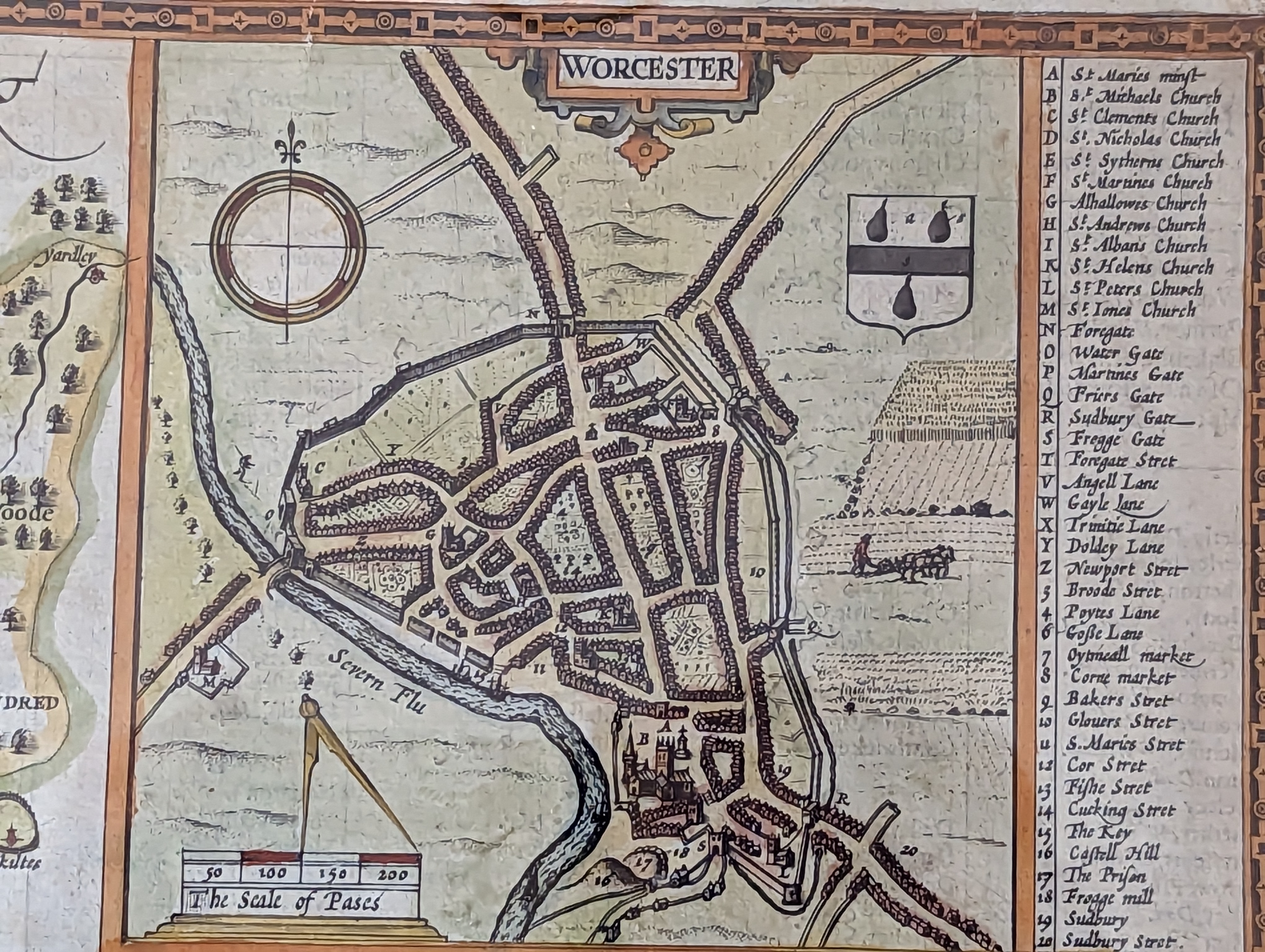 Described by Christopher Saxton, Augmentr: / and published by IOHN SPEEDE citize / of London, & are there to be Solde / in Popes-heade Alley against the Ex: / change by John Sudnury and George / Humble Cum Privilegio
