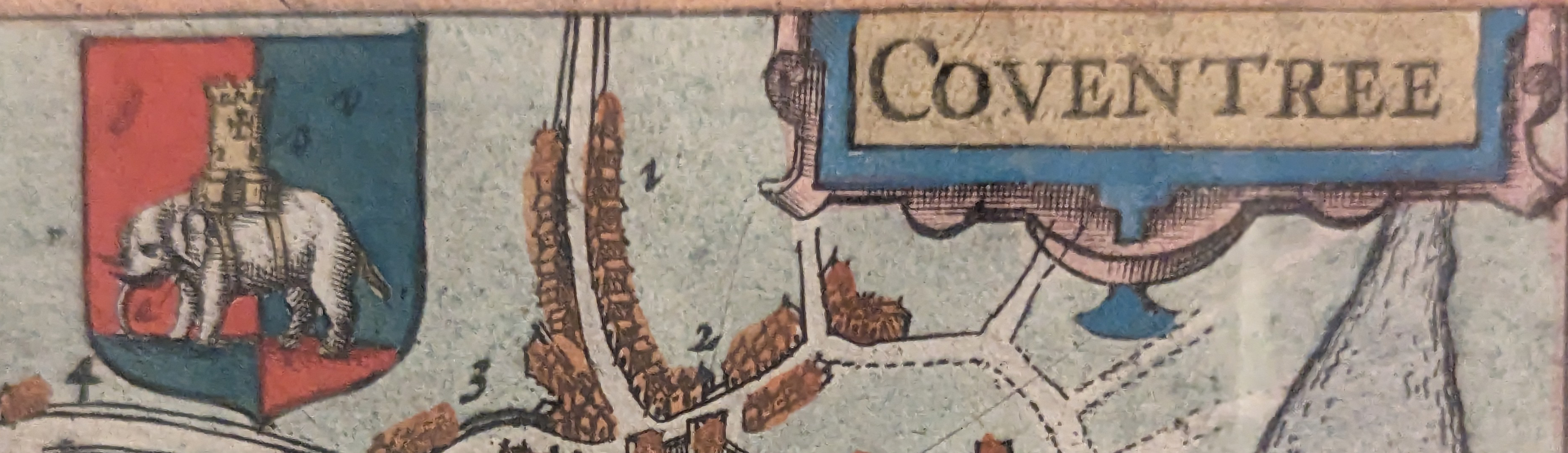 THE COUNTI OF / WARWICK / THE SHIRE TOWN AND CITIE OF CO / VENTRE described