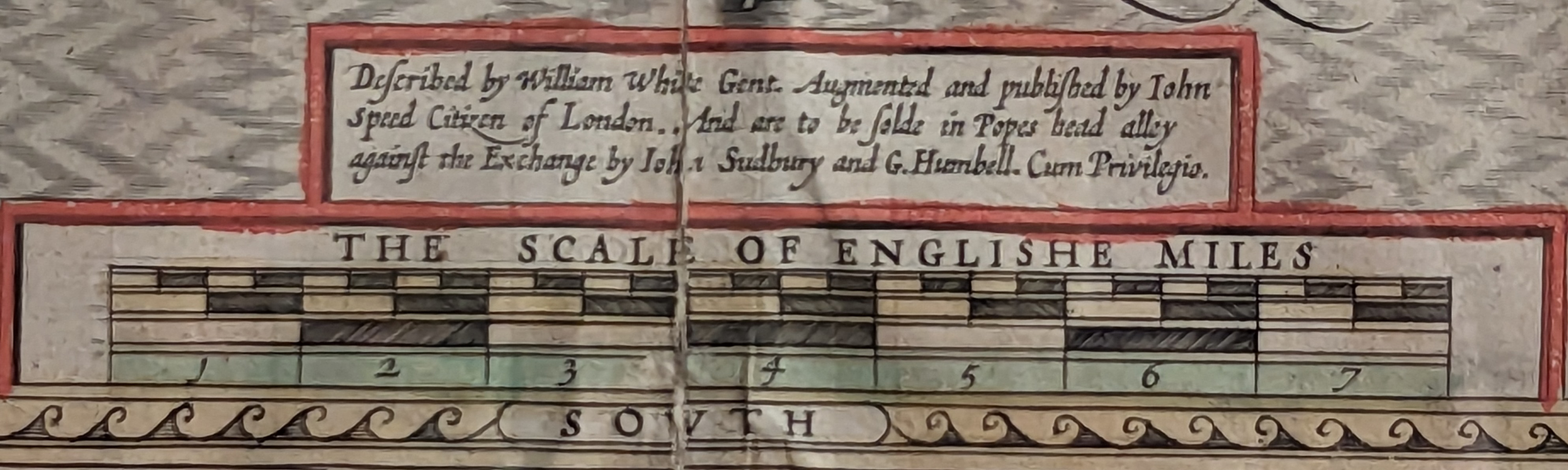 Described by William White Gent. Augmented and published by Iohn / Speed Citizen of London. And are to be solde in Popes head alley / against the Exchange by John DSudbury and G. Humbell. Cum Privilegio.
