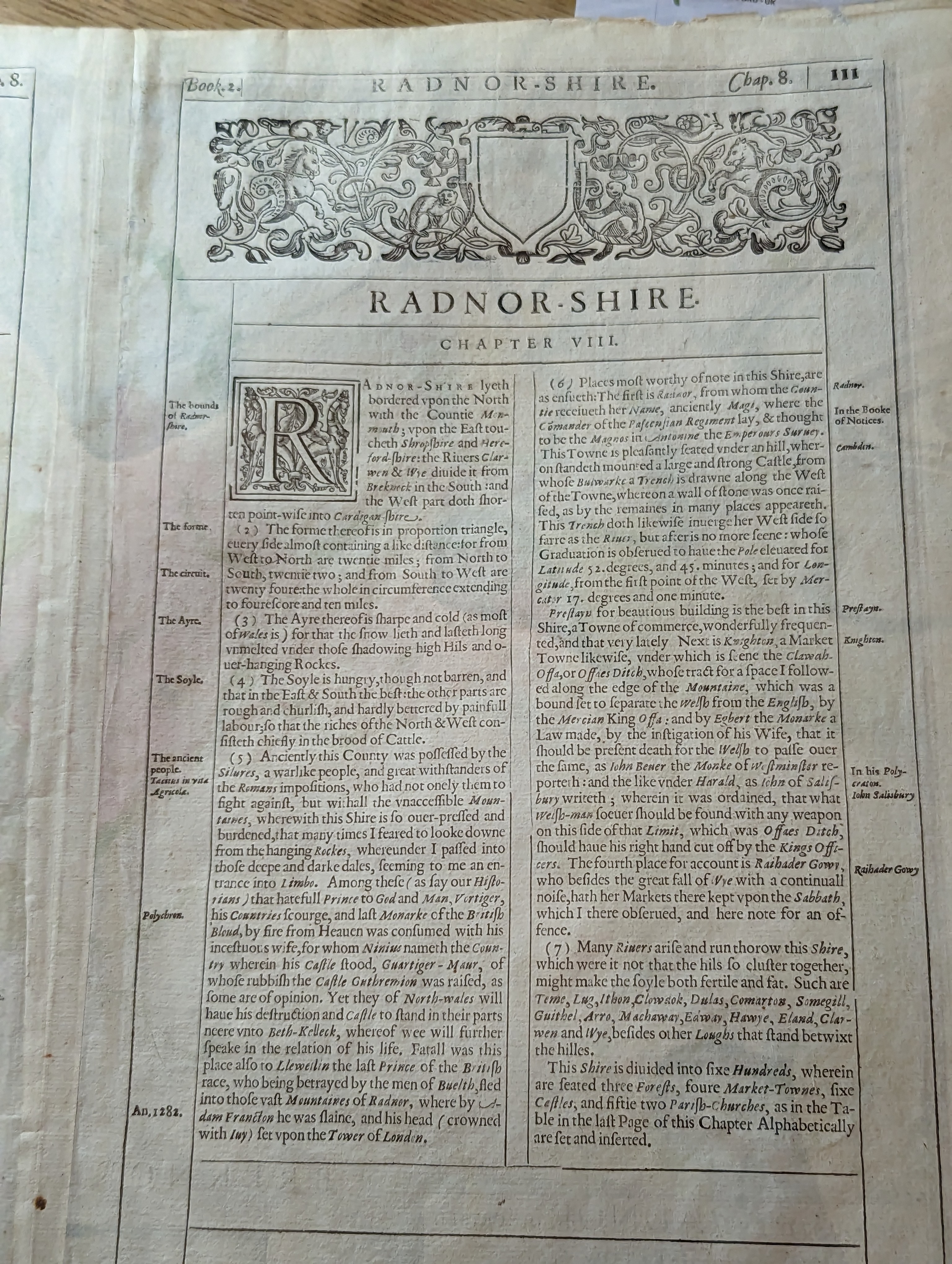 THE COUNTIE OF RADNOR DESCRIBED / AND THE SHYRETOWNS / SITTUATIONE / Anno 1610.
