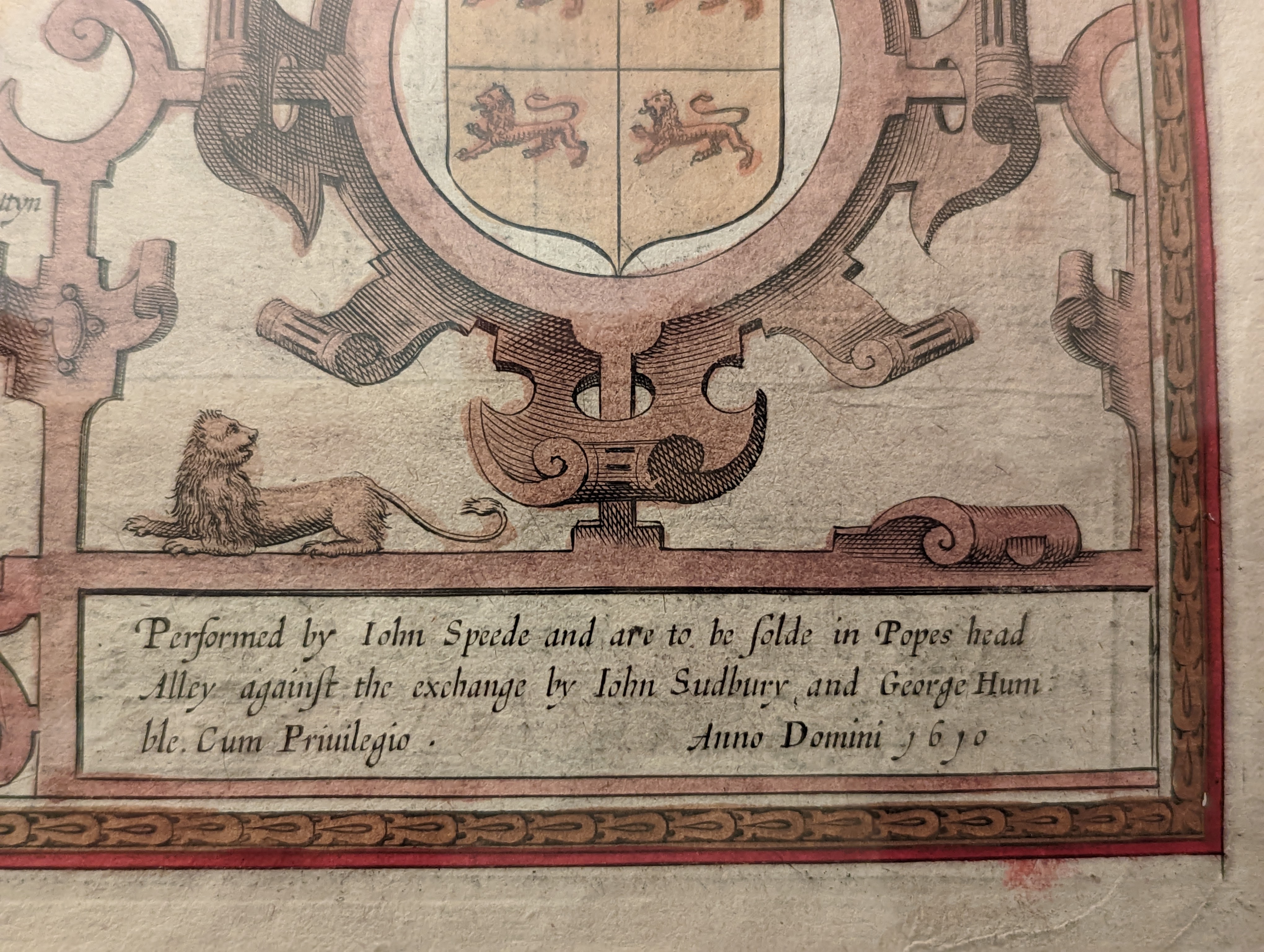 Performed by Iohn Speede and are to be solde in Popes head / Alley against the exchange by Iohn Sudbury and George Hum / ble. Cum Privilegio. Anno Domini 1610