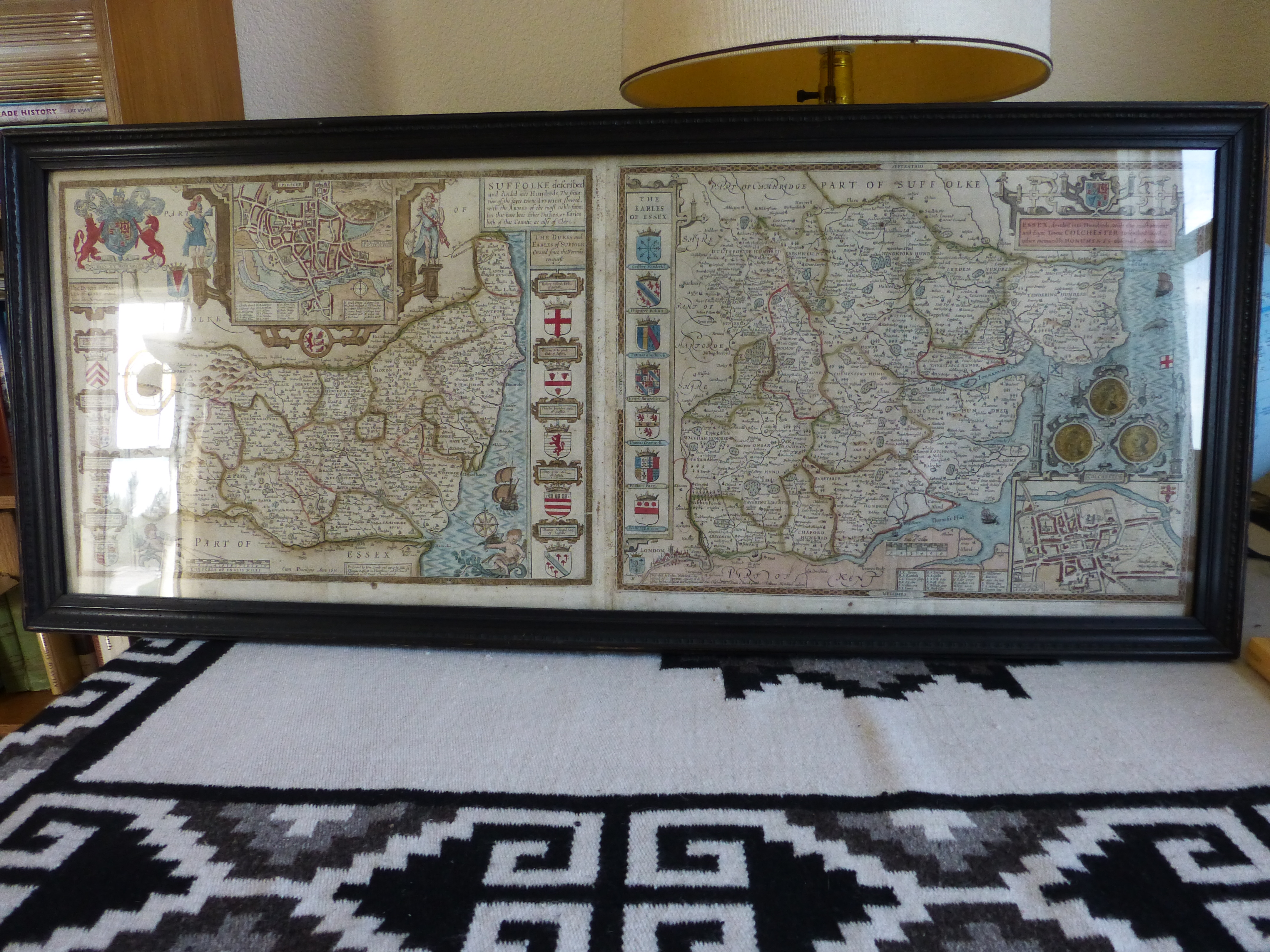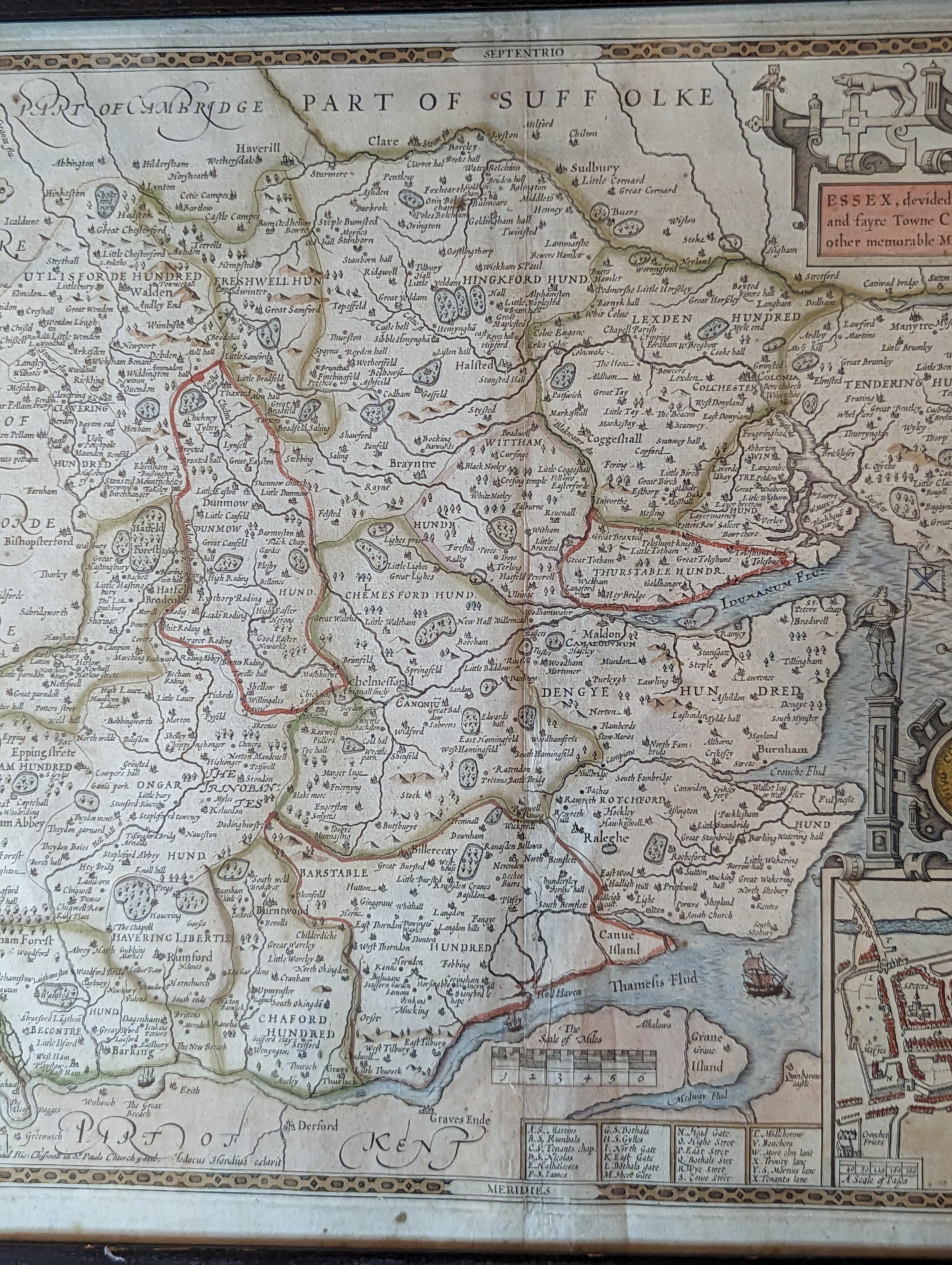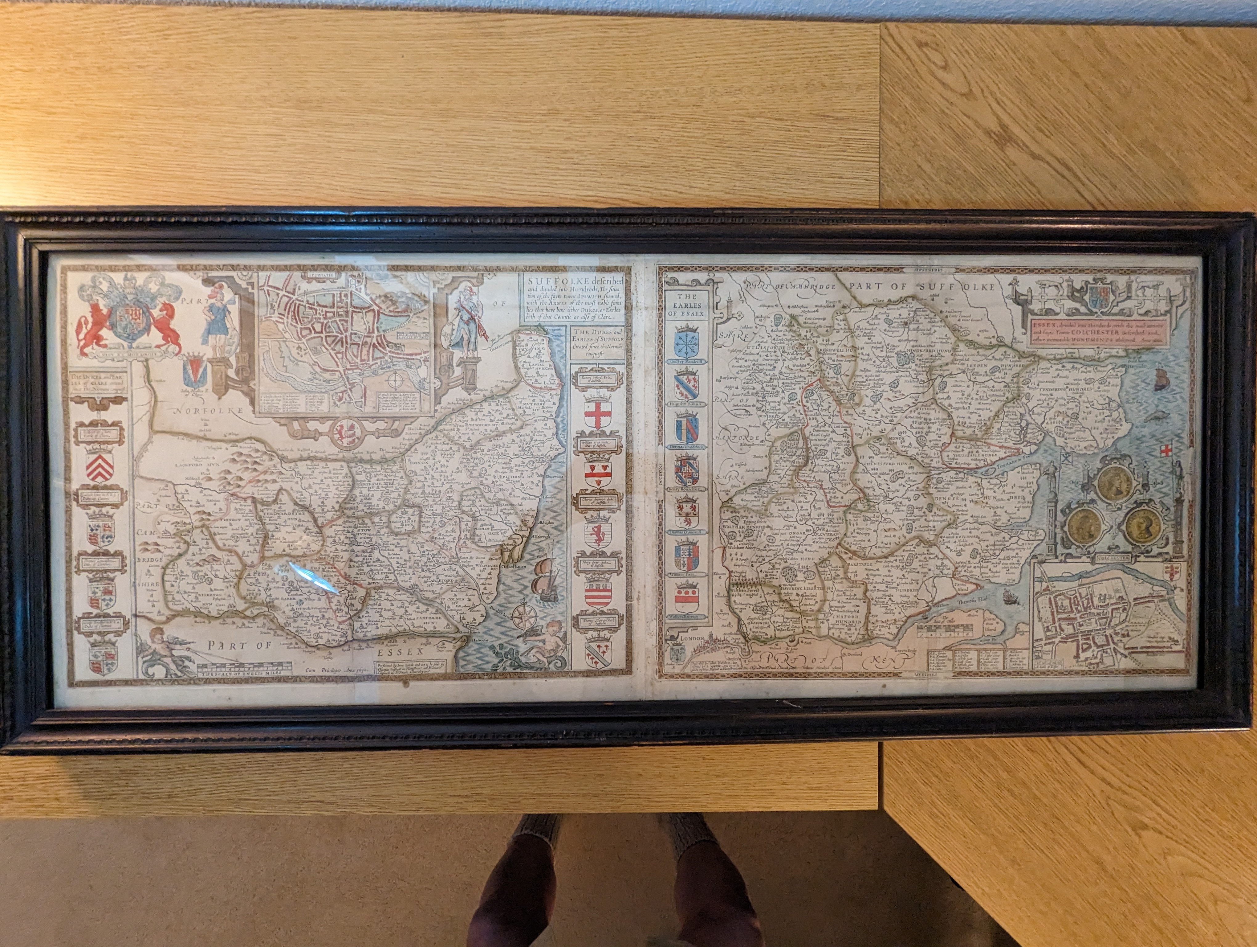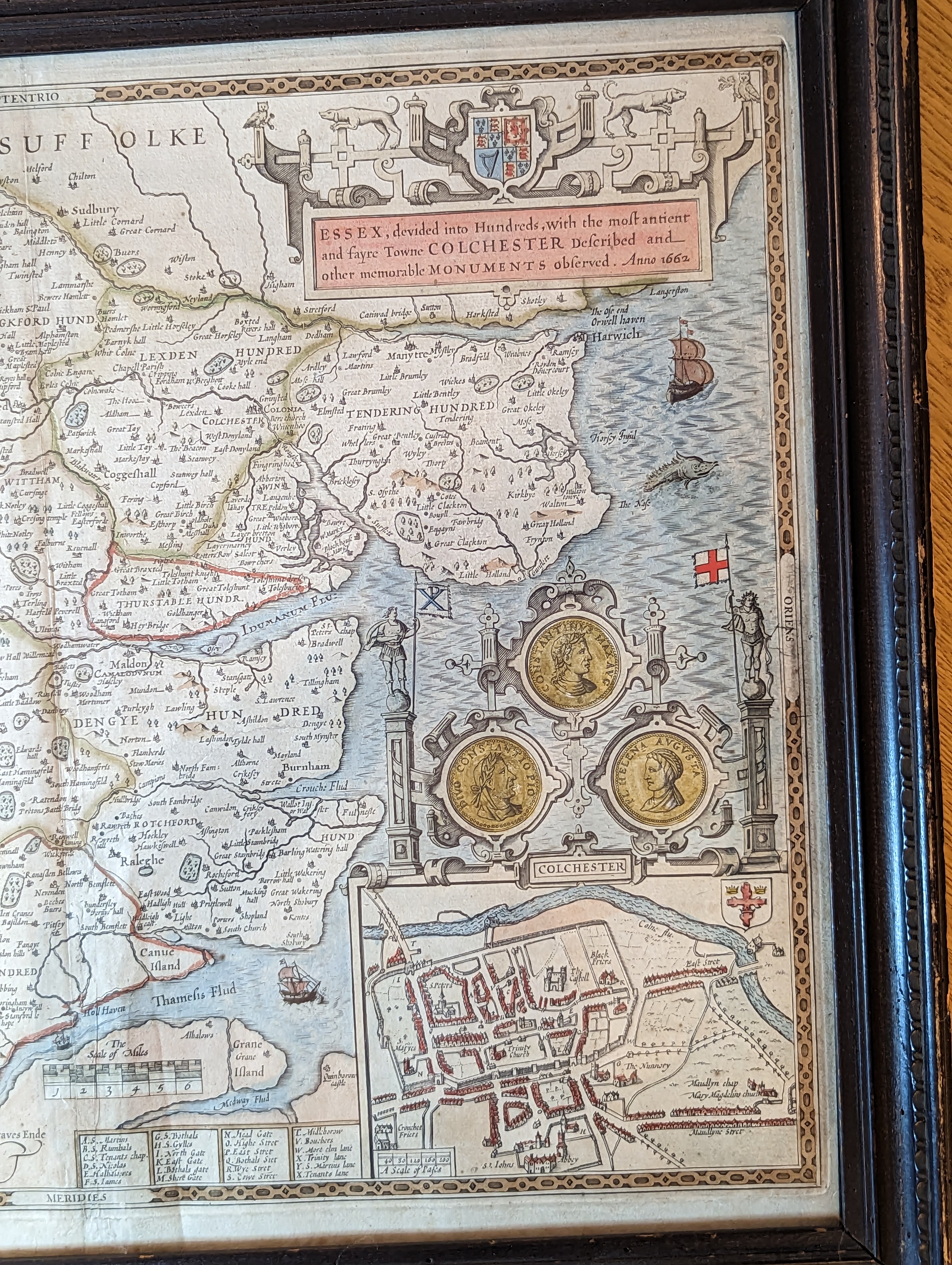 SUFFOLKE described / and divided into Hundreds, The Situa : / tion of the fayre towne Ipswich Shewed, / with the Armes of the most noble fami: / lies that have bene either Dukes, or Earles / both of that Countie as also of Cla're.