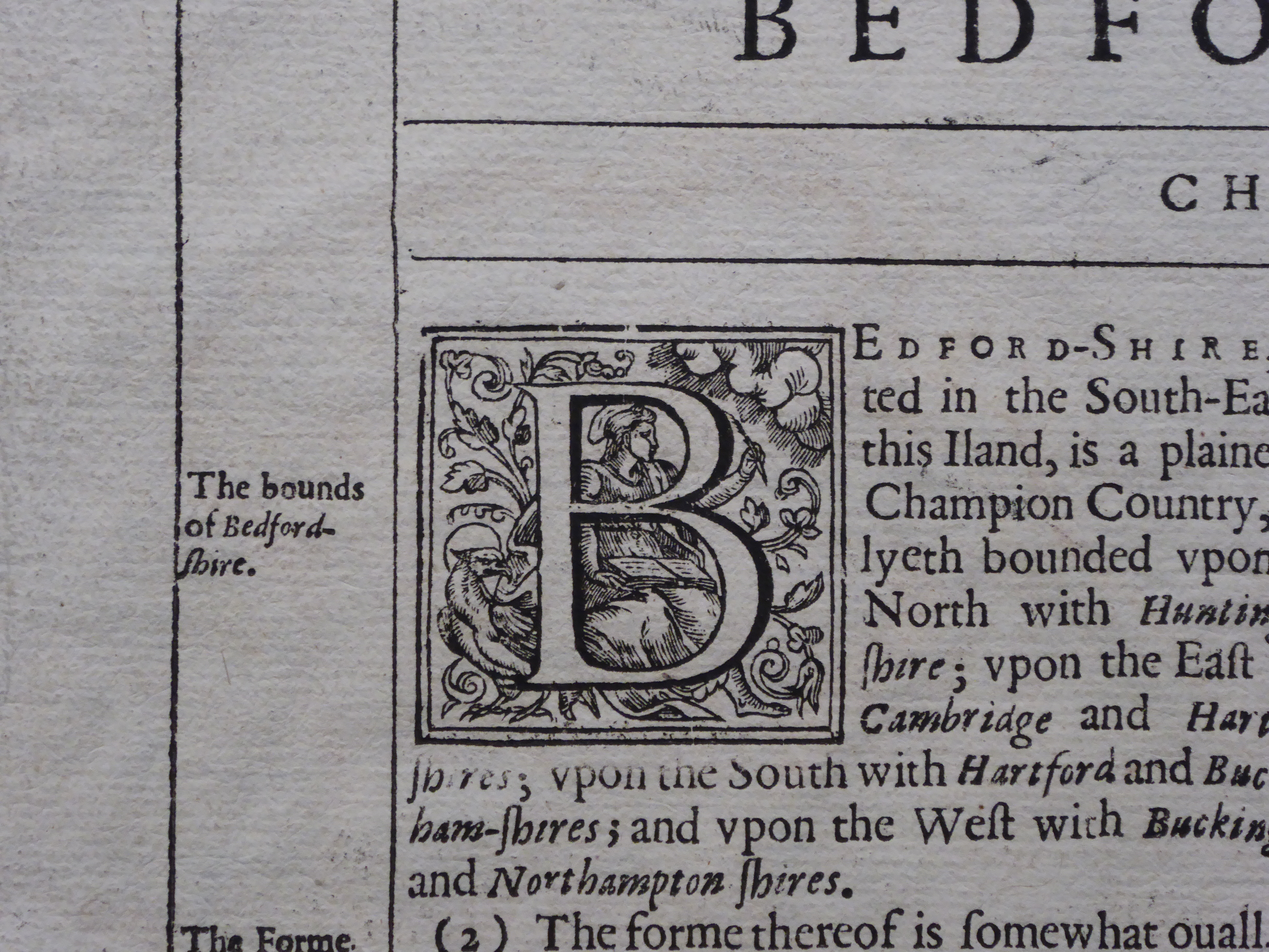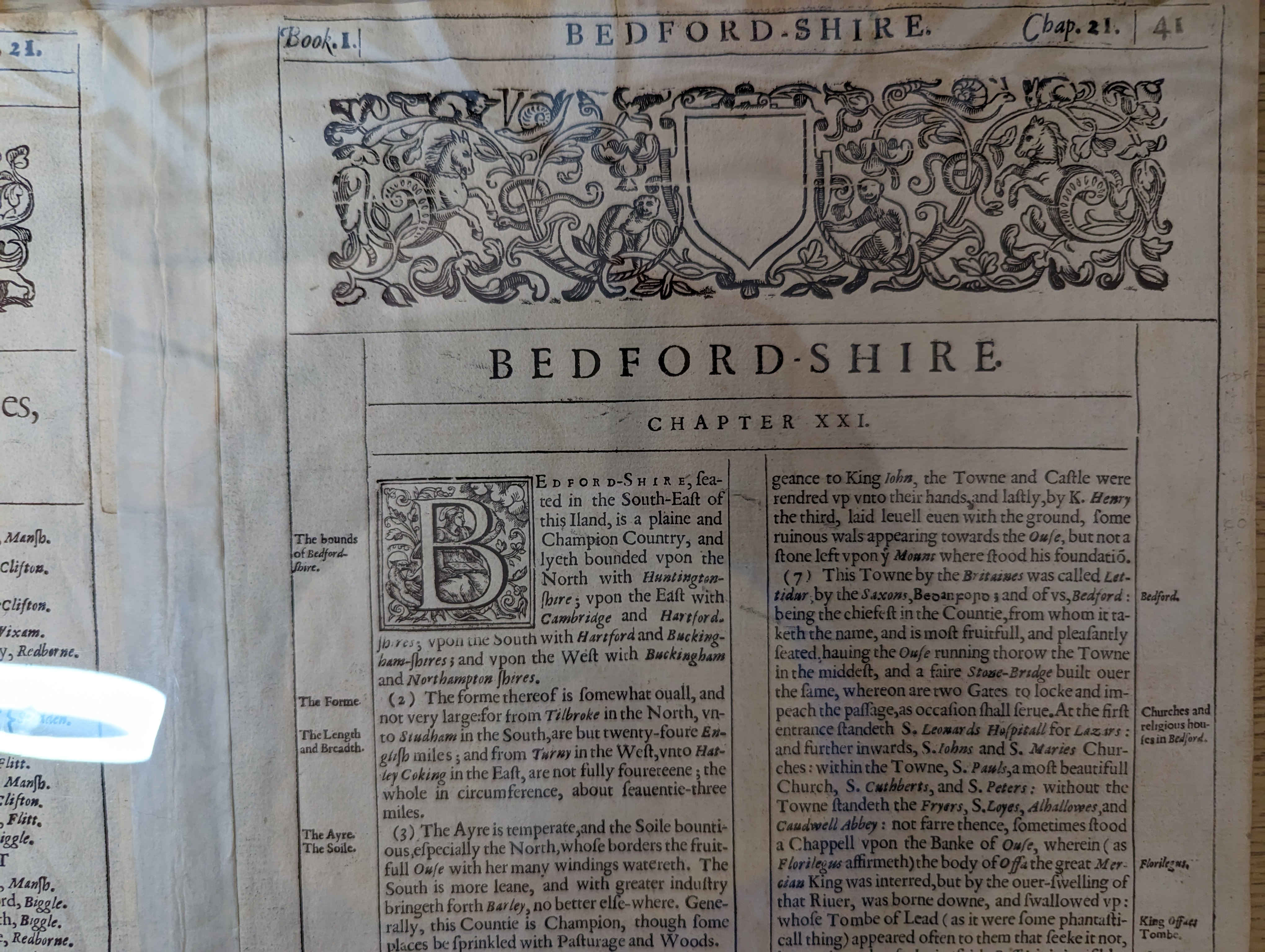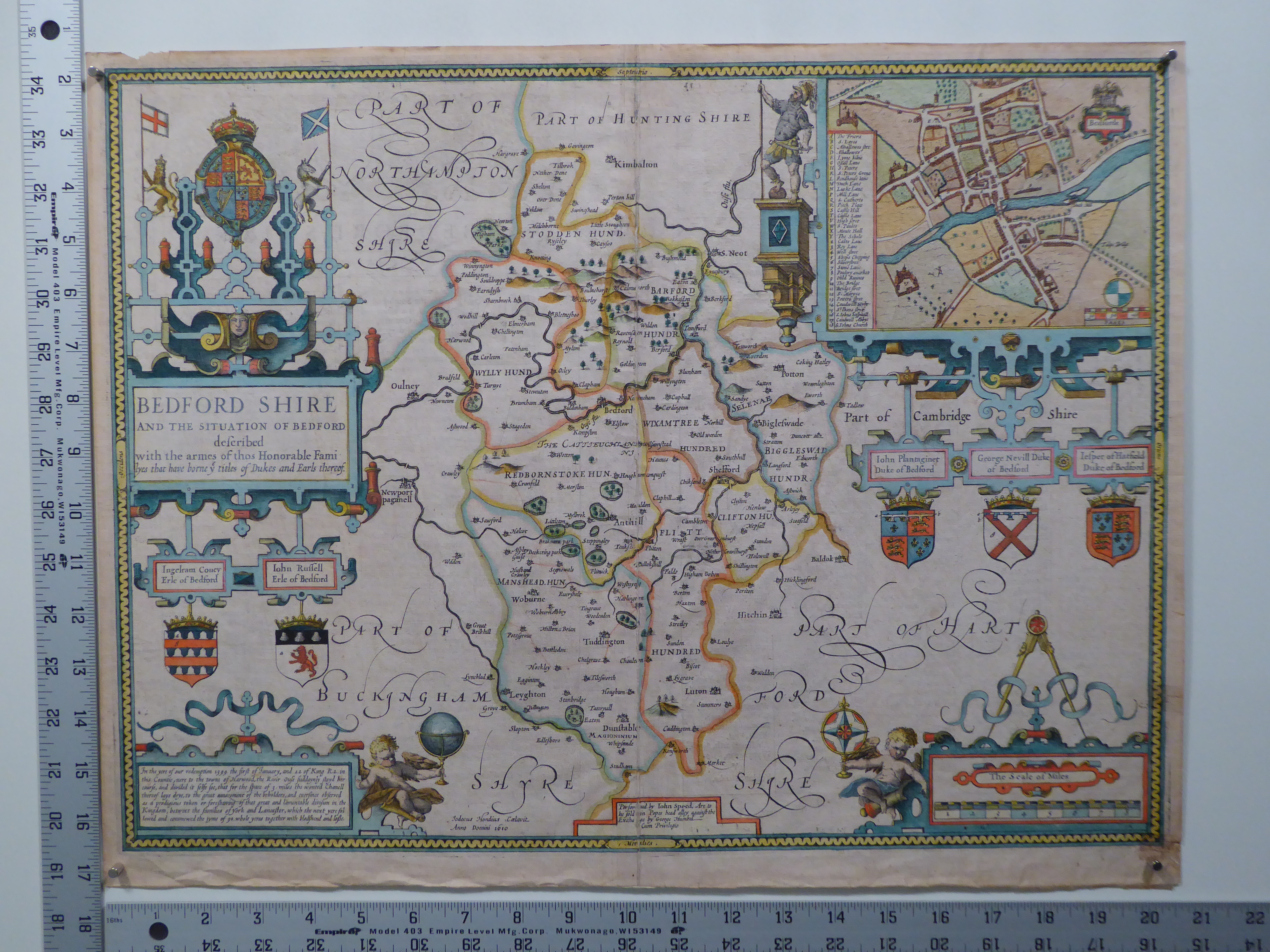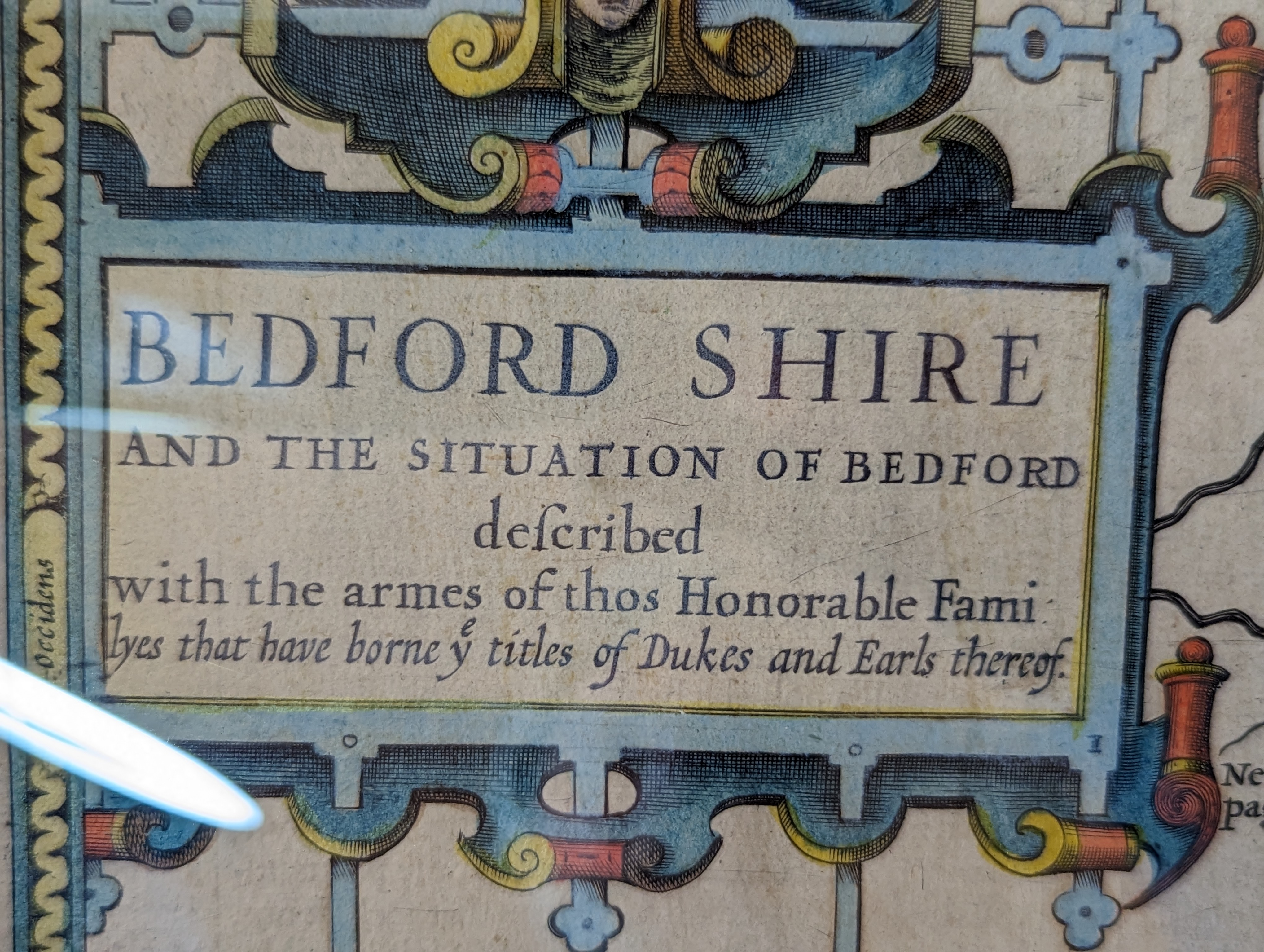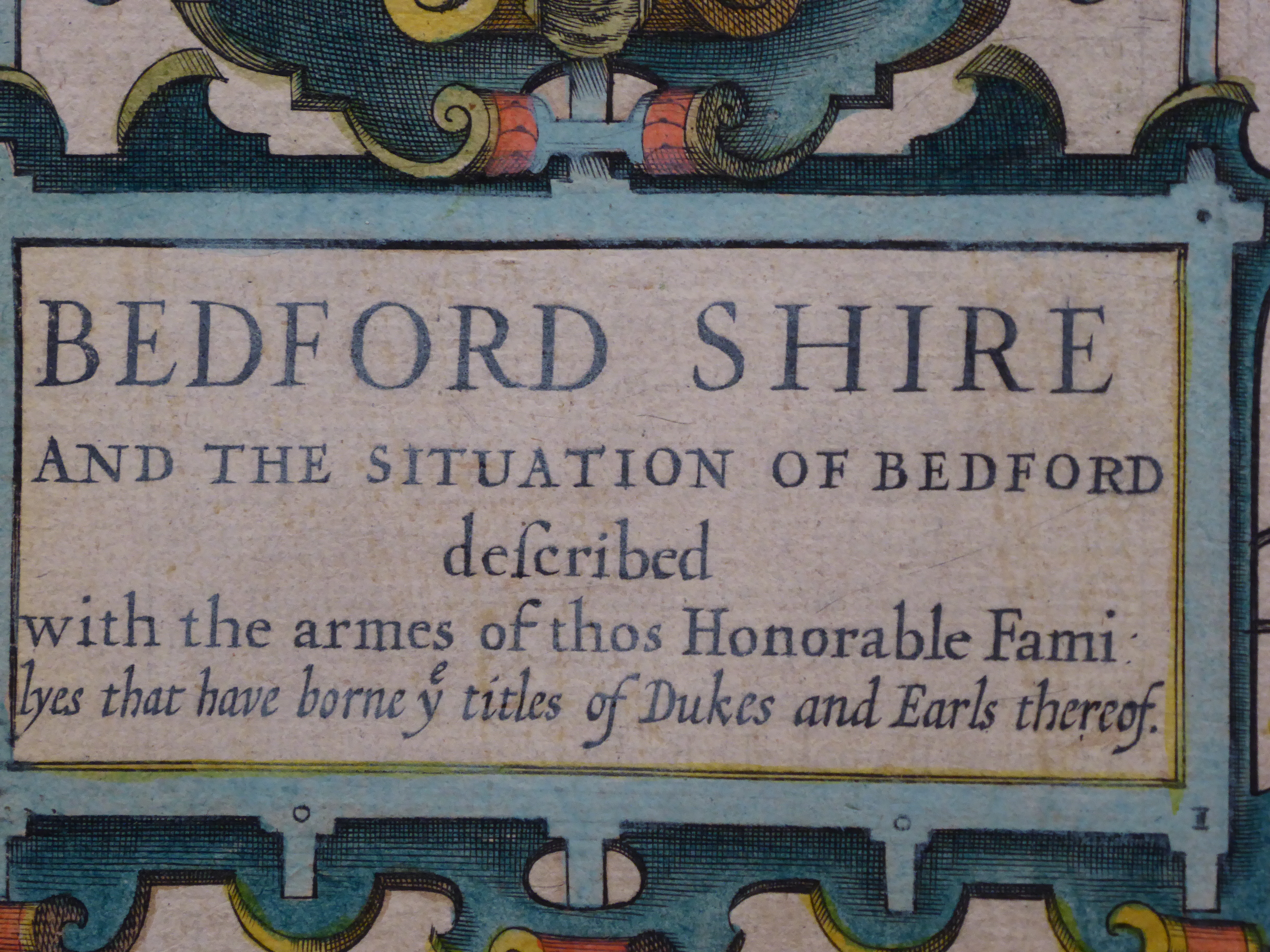BEDFORD SHIRE / AND THE SITUATION OF BEDFORD / described / with the armes of thos Honorable Fami / lyes that have borne ye titles of Dukes and Earls thereof.