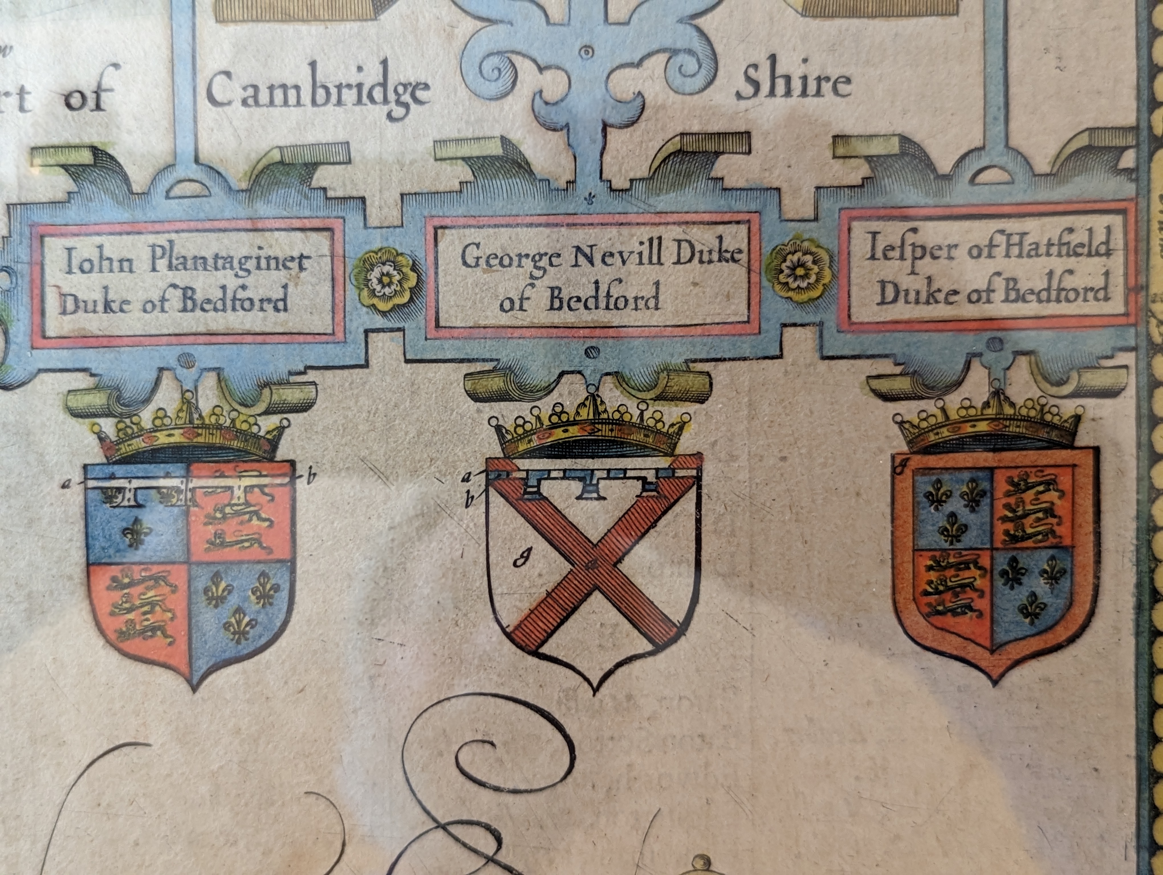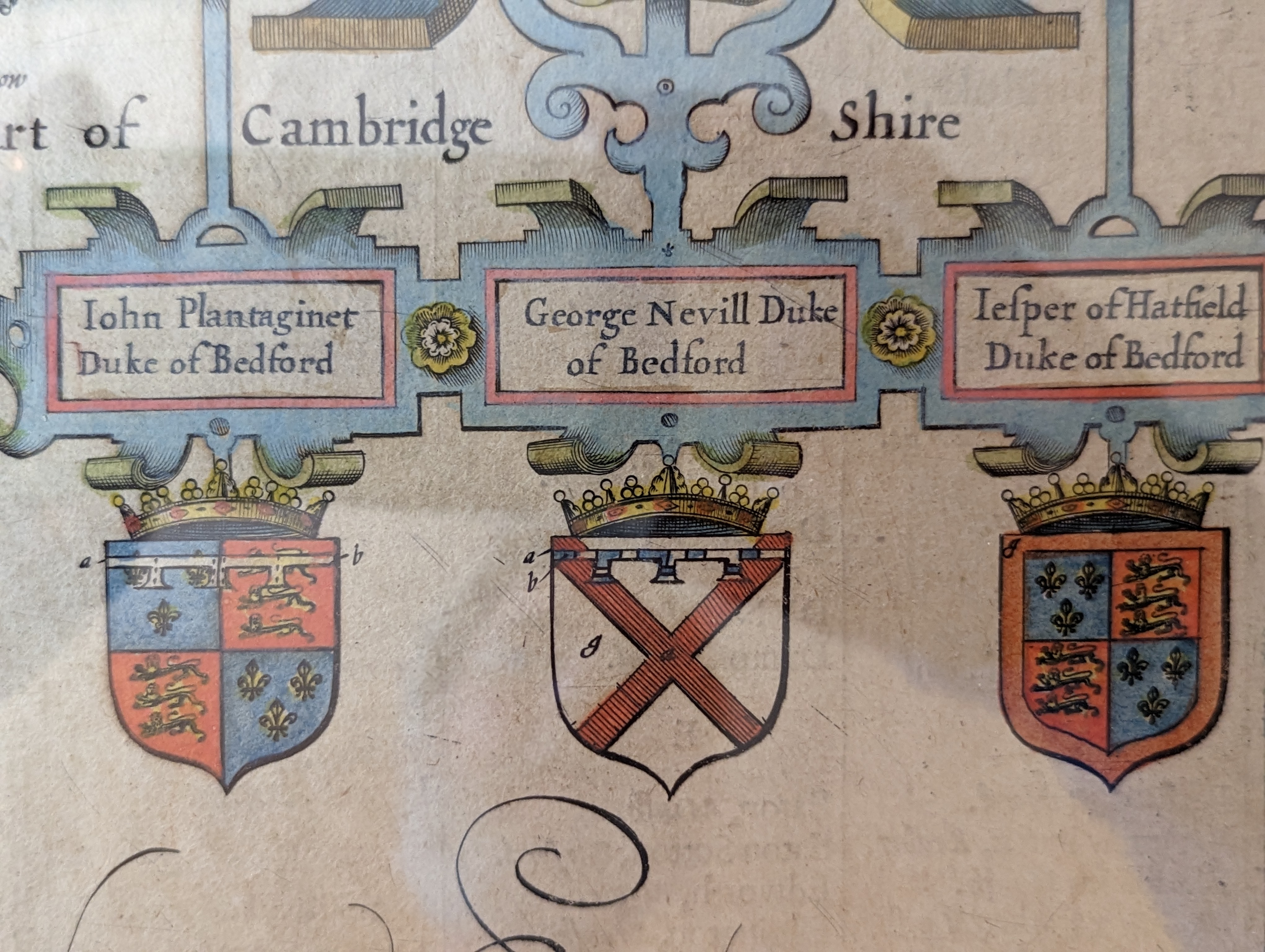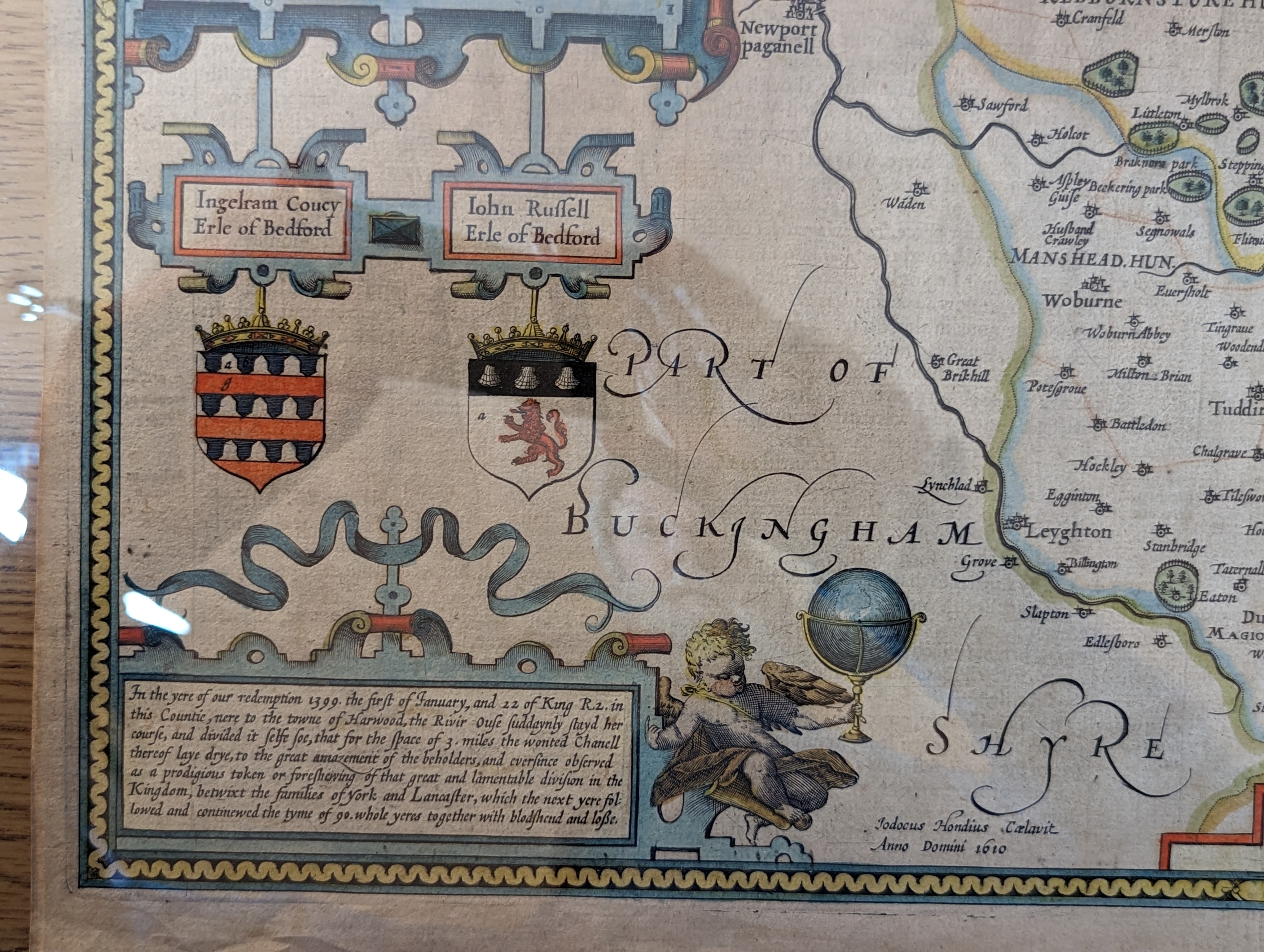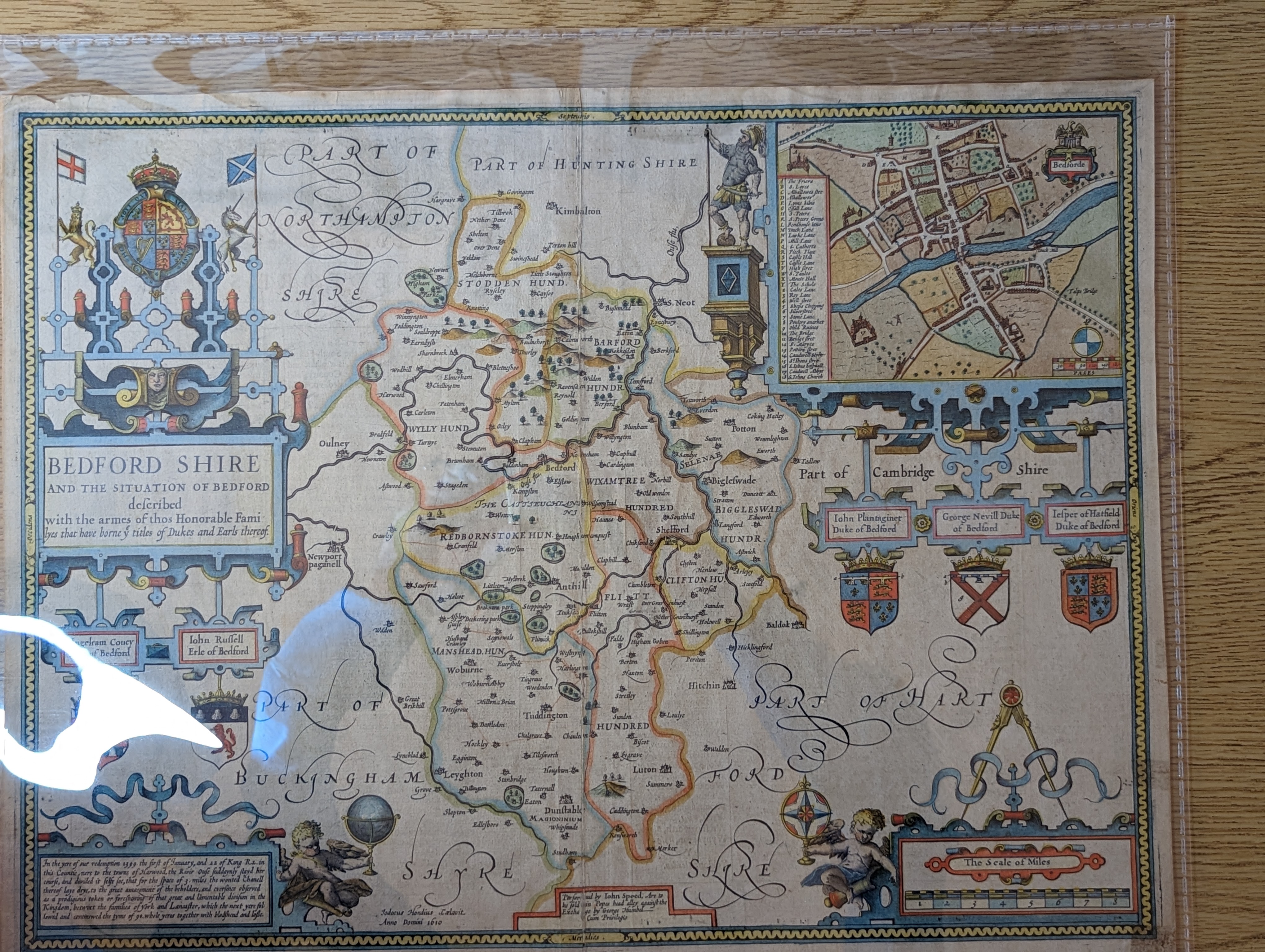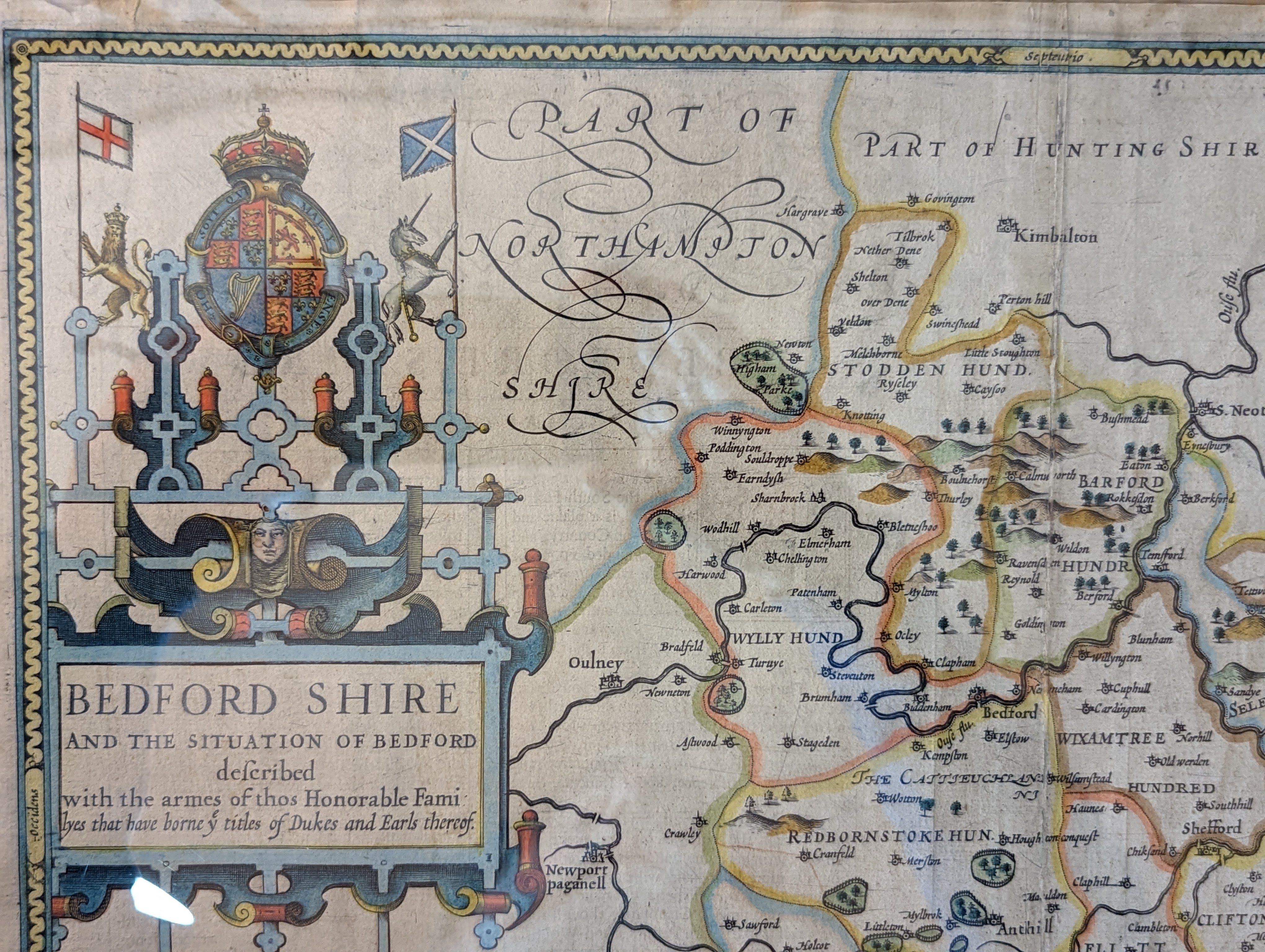 BEDFORD SHIRE / AND THE SITUATION OF BEDFORD / described / with the armes of thos Honorable Fami / lyes that have borne ye titles of Dukes and Earls thereof.