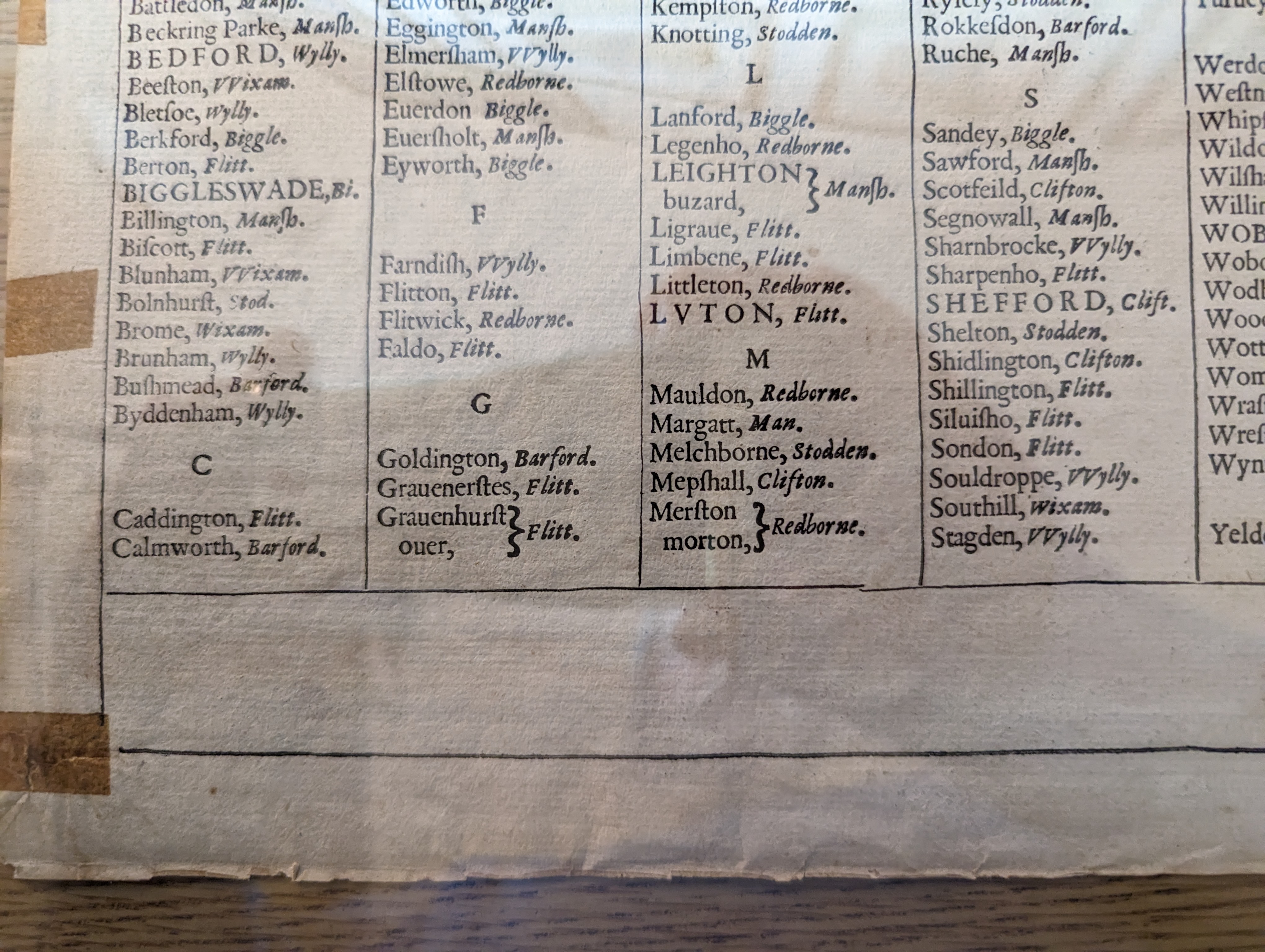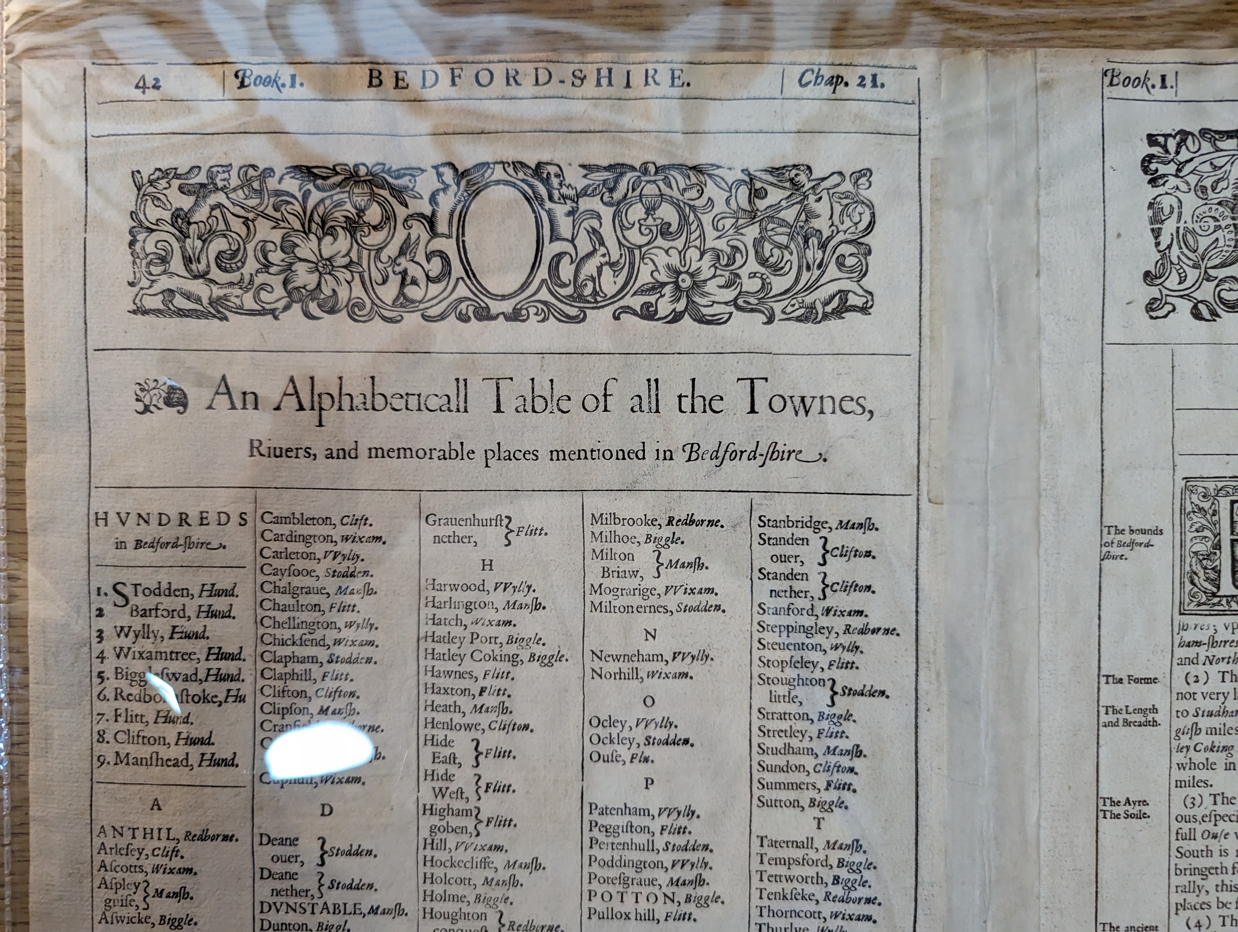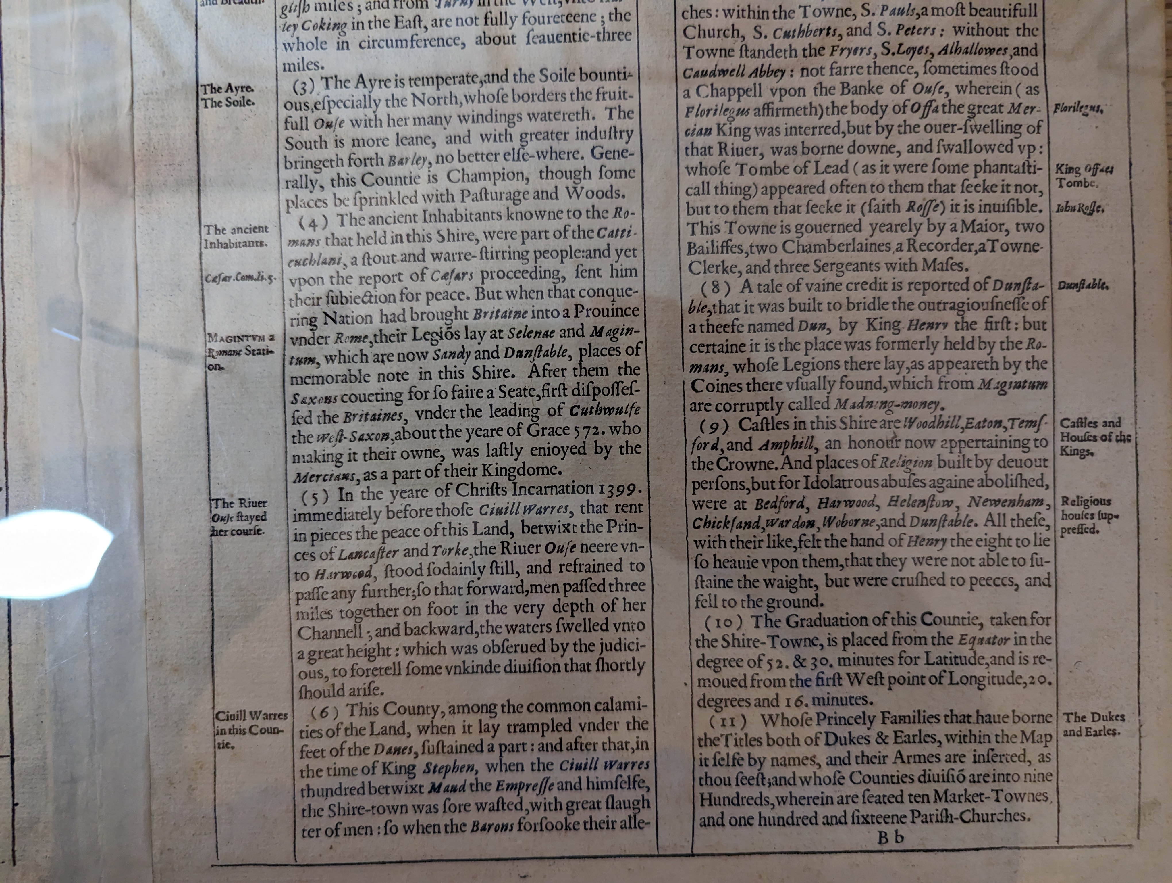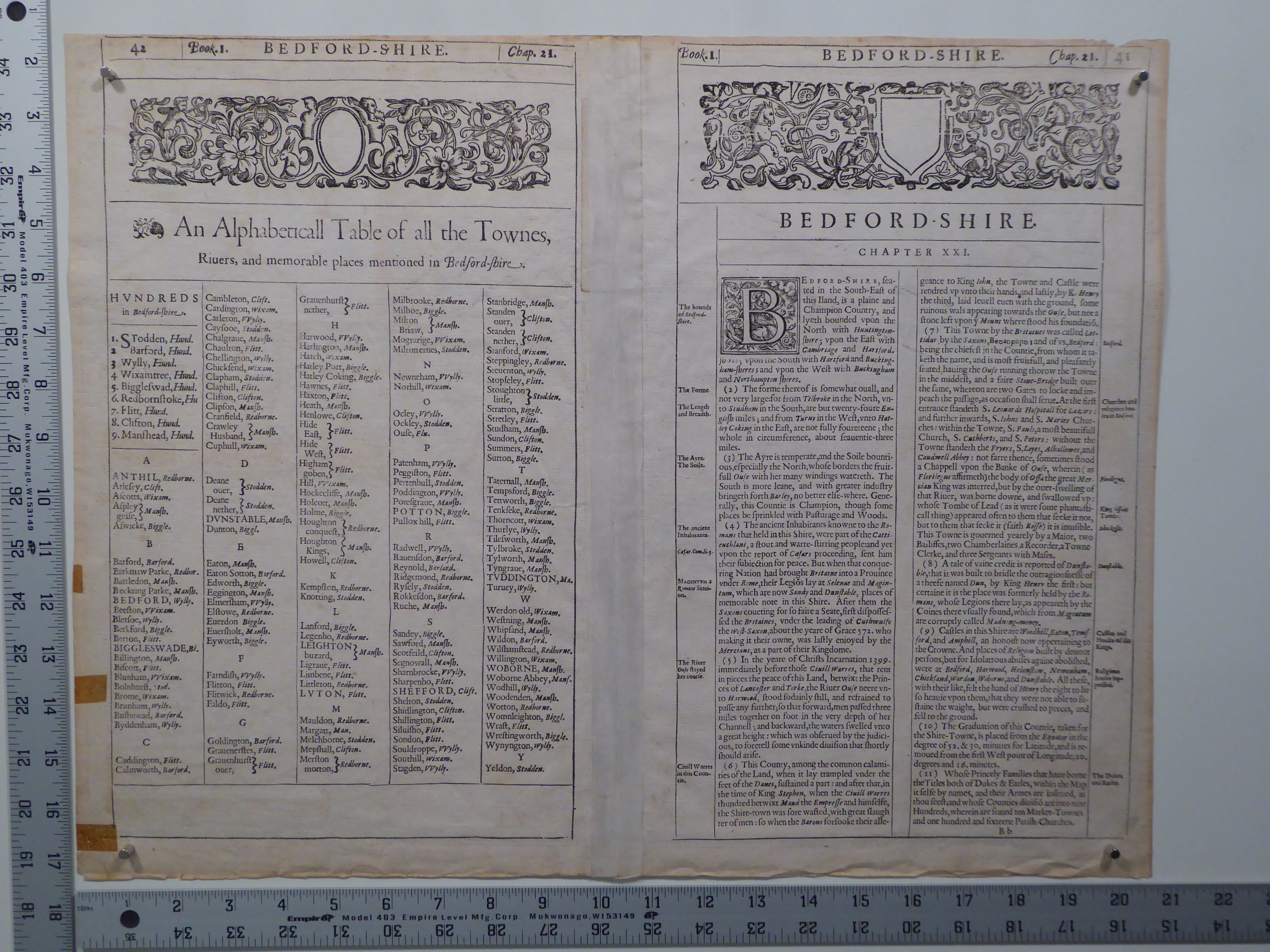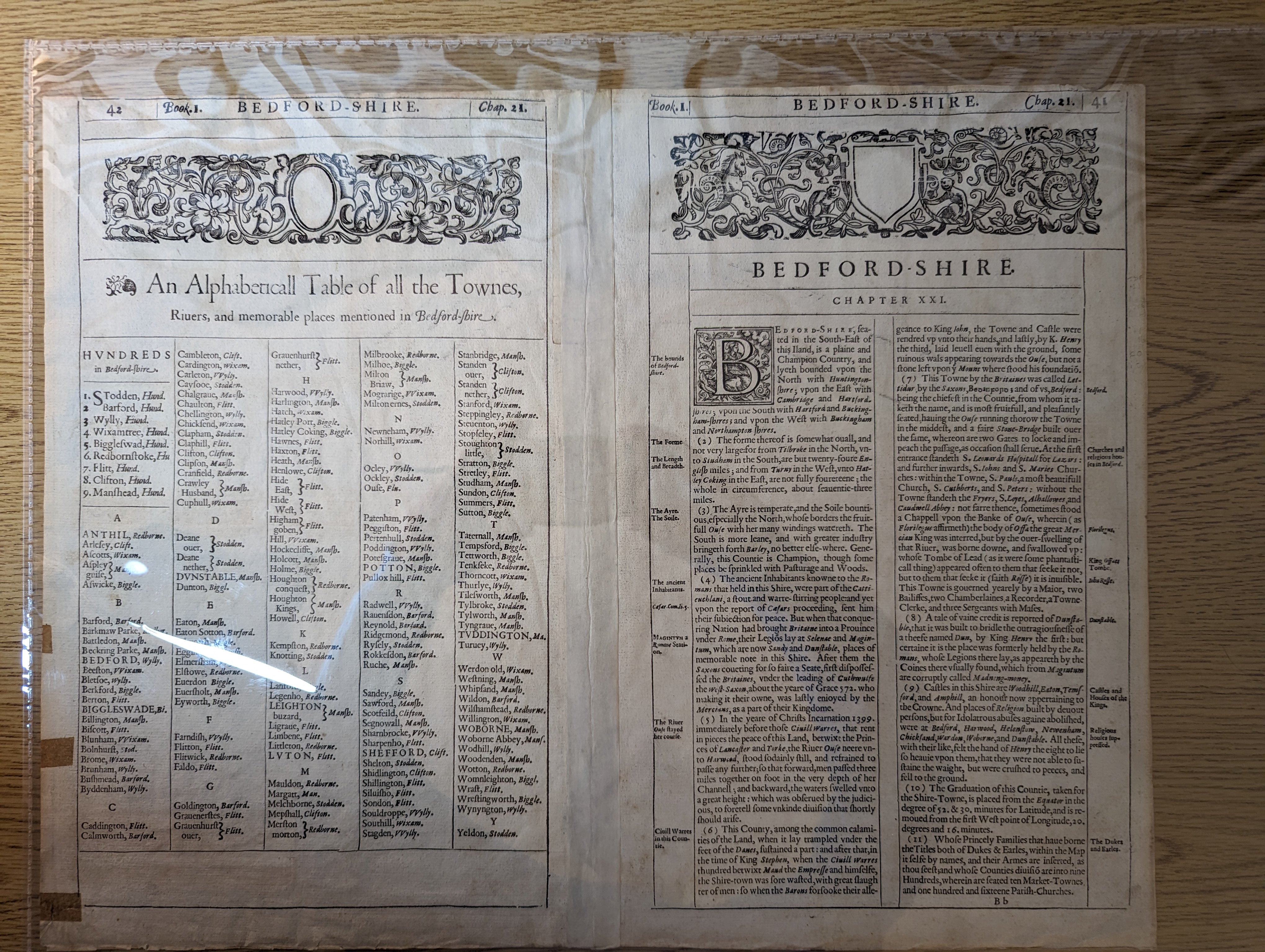 BEDFORD SHIRE / AND THE SITUATION OF BEDFORD / described / with the armes of thos Honorable Fami / lyes that have borne ye titles of Dukes and Earls thereof.