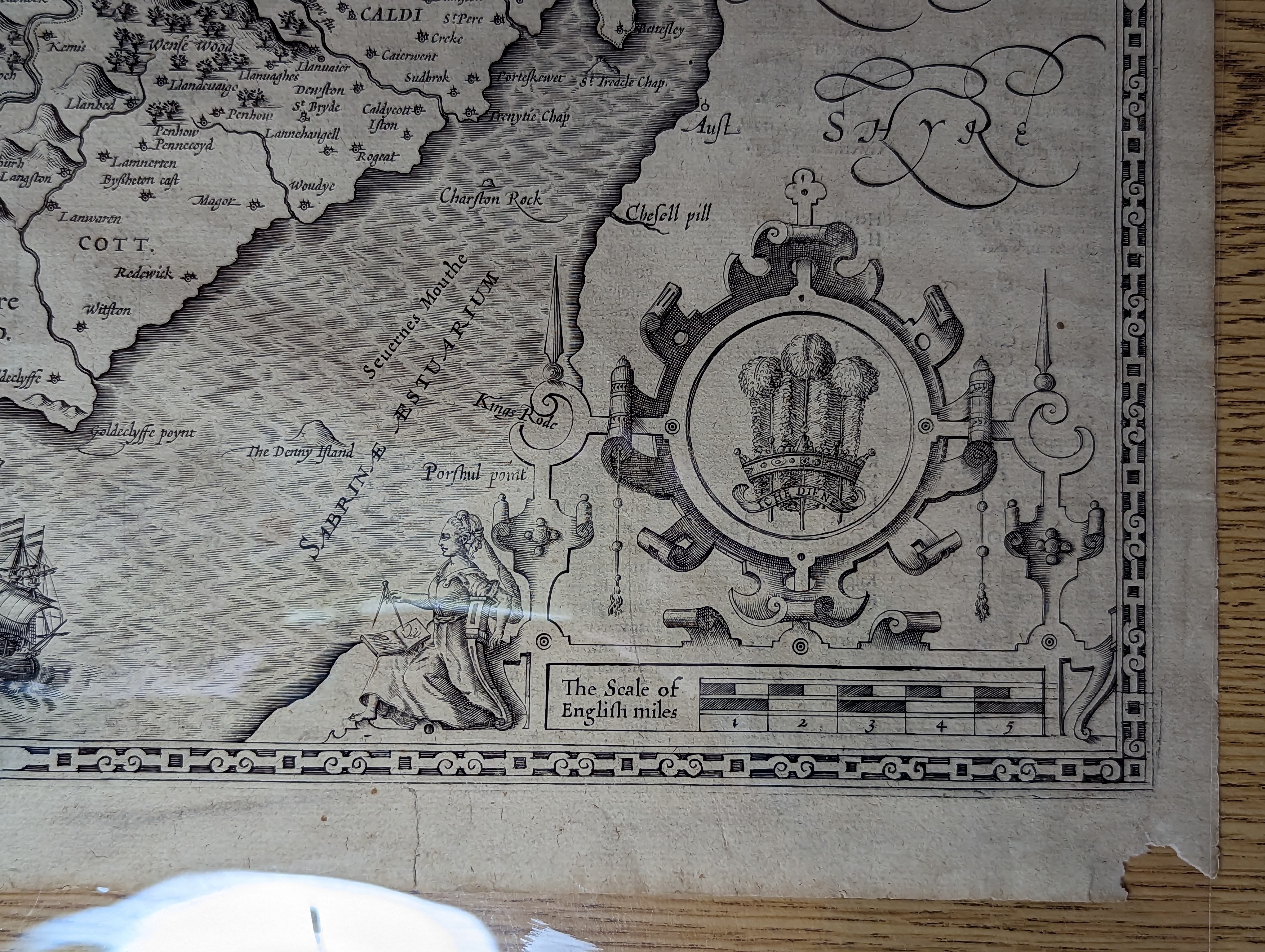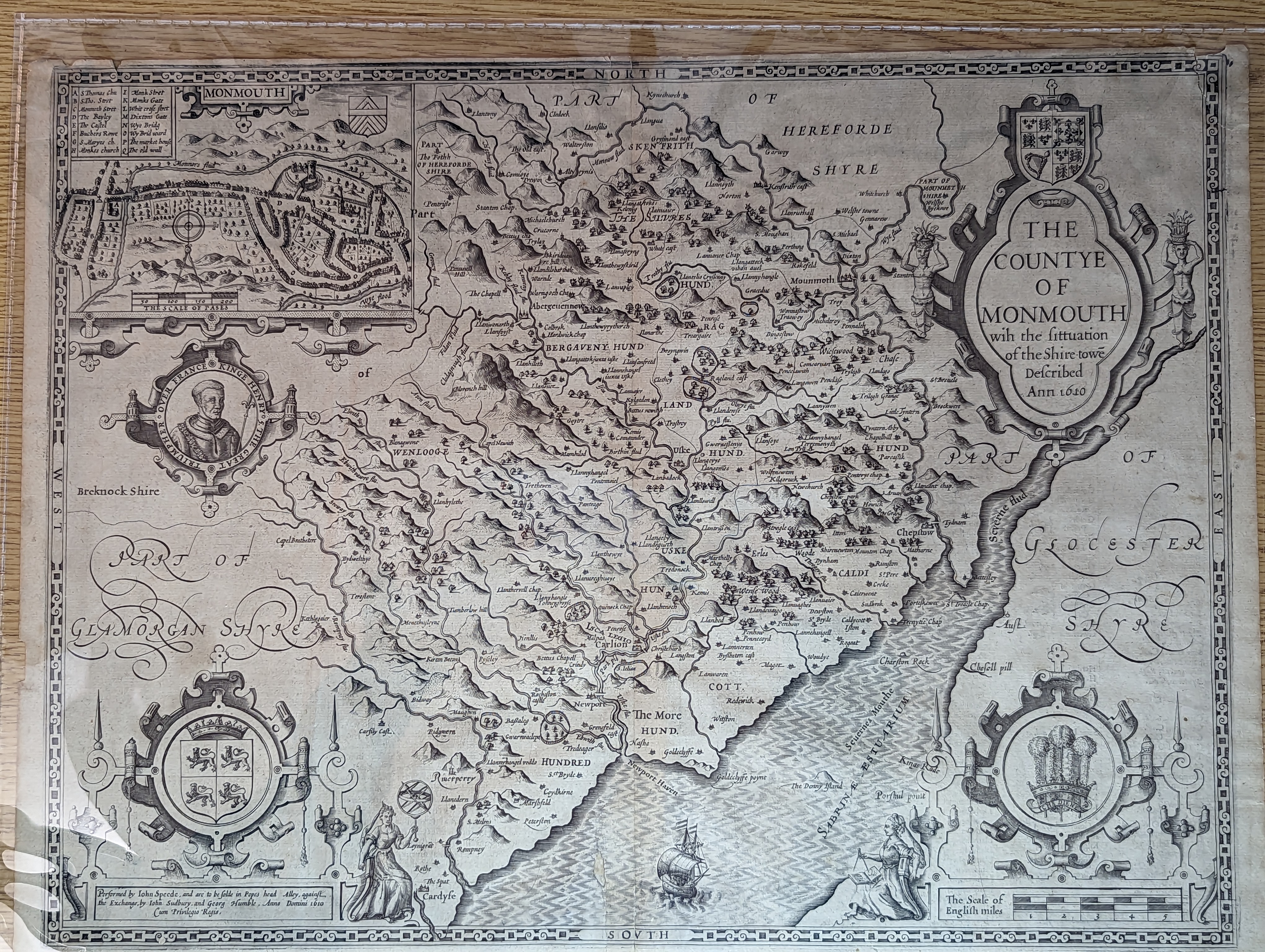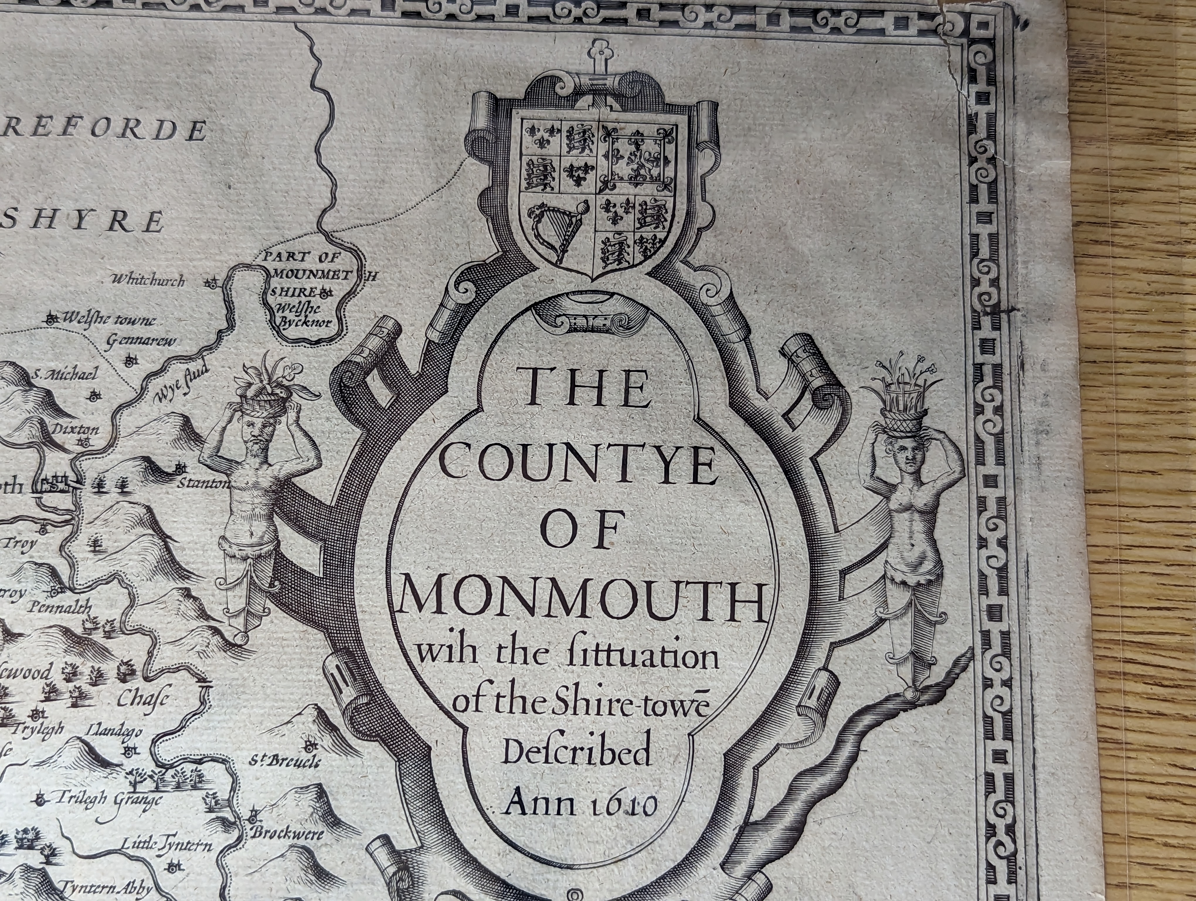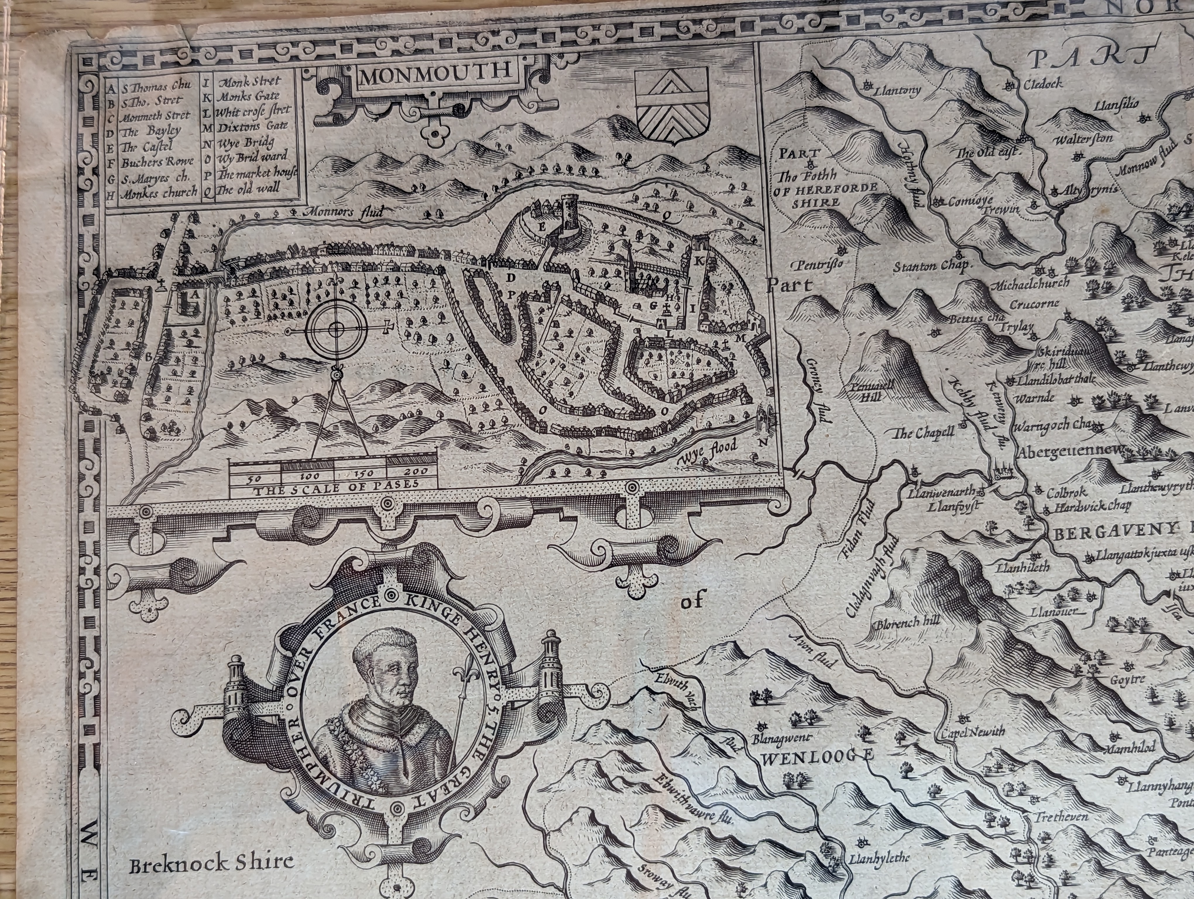 THE / COUNTYE / OF / MONMOUTH / with the sittuation of the Shire towe / Described / Ann 1610