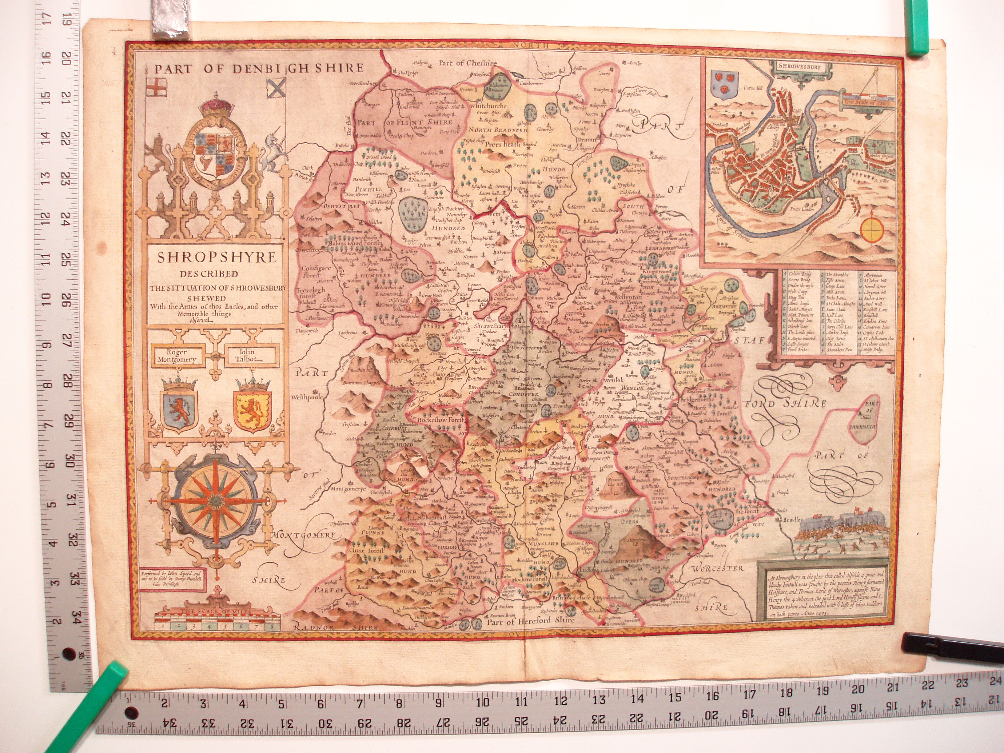 Title: SHROPSHYRE / DESCRIBED / THE SITTUATION OF SHROWESBURY / SHEWED / With the Armes of thos Earles, and other / Memorable things / observed