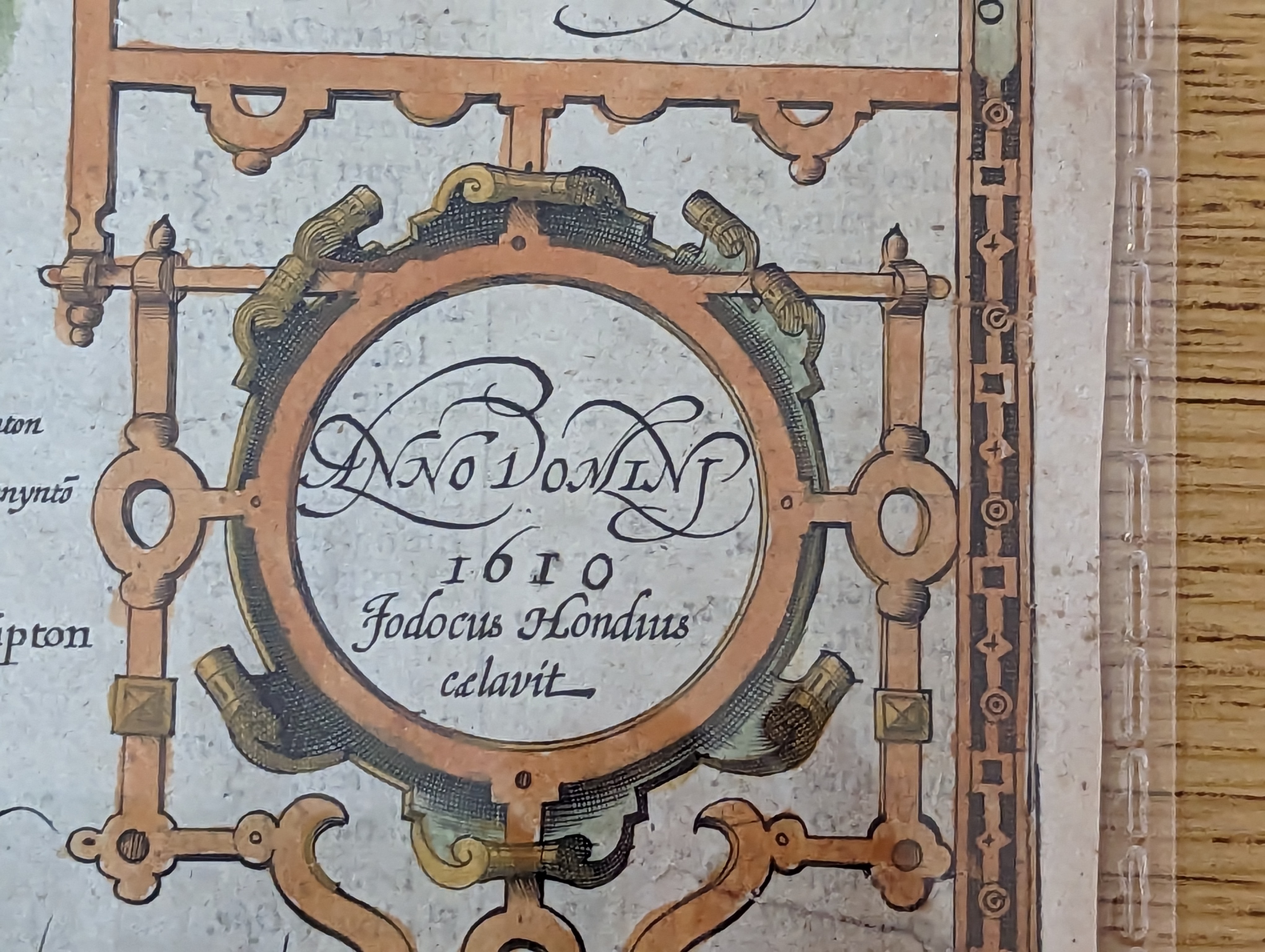 Described by Christopher Saxton, Augmentr: / and published by IOHN SPEEDE citize / of London, & are there to be Solde / in Popes-heade Alley against the Ex: / change by John Sudnury and George / Humble Cum Privilegio