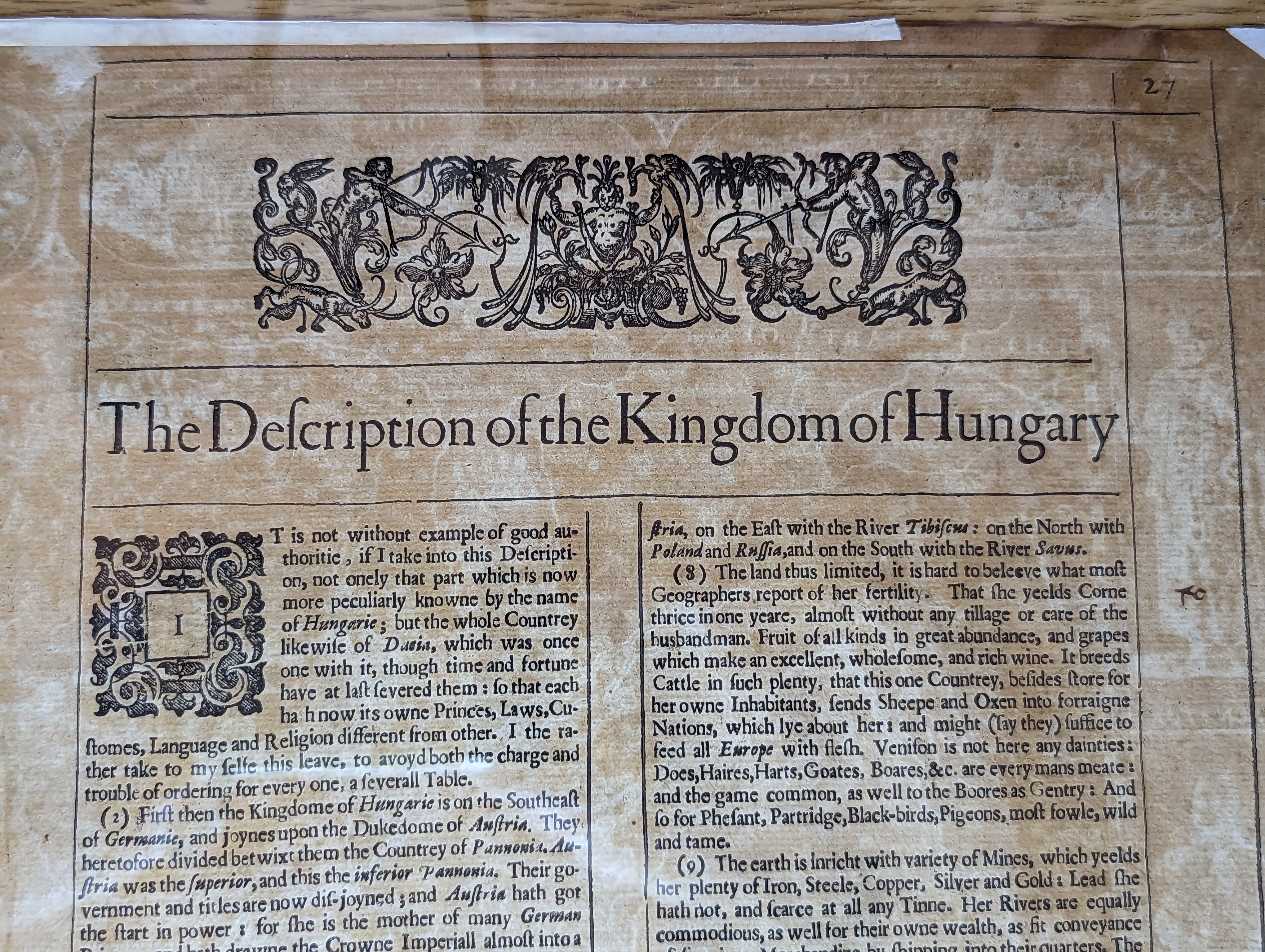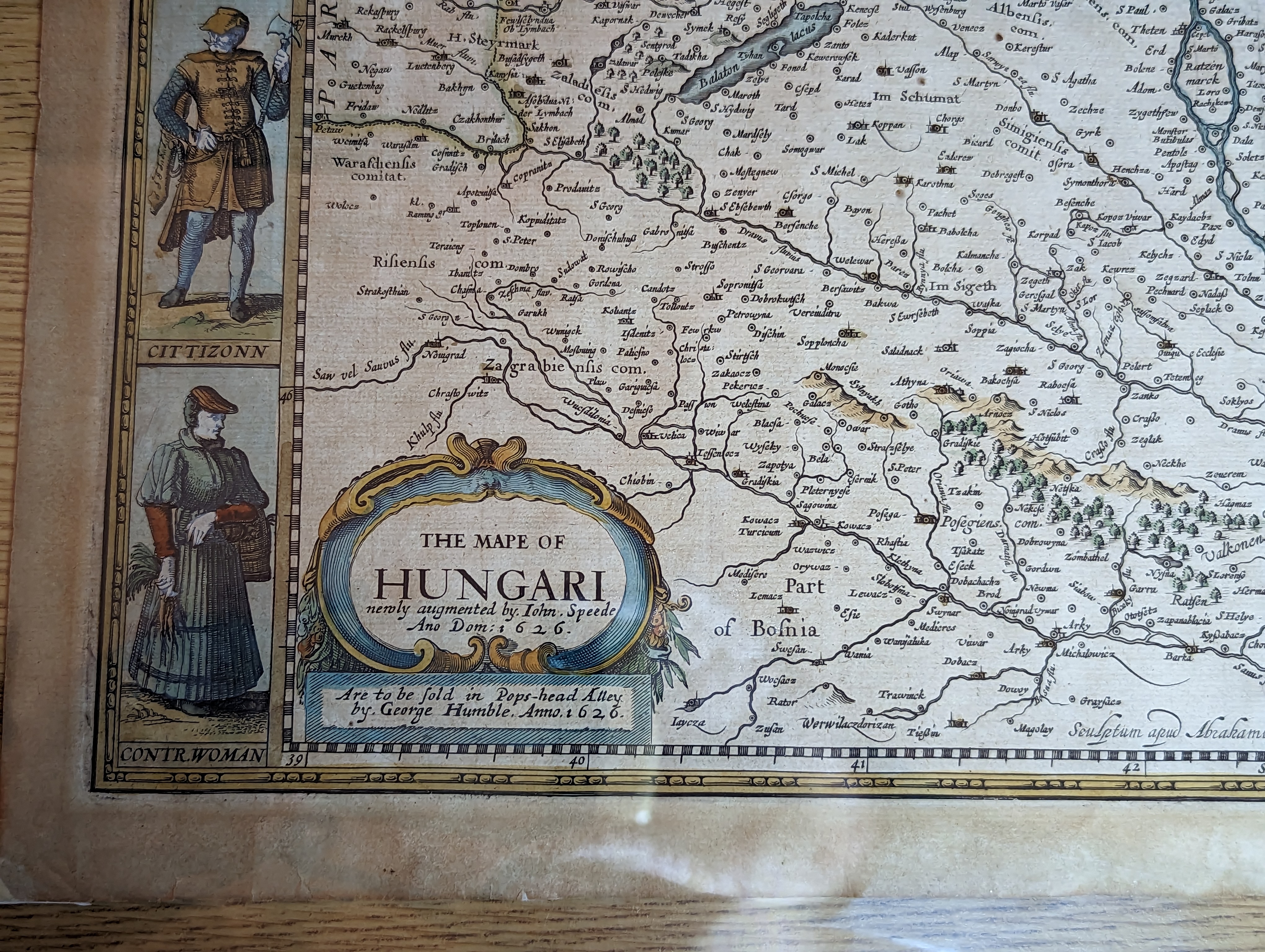 THE MAPE OF / HUNGARI / newly augmented by Iohn Speede / Ano Dom: 1626