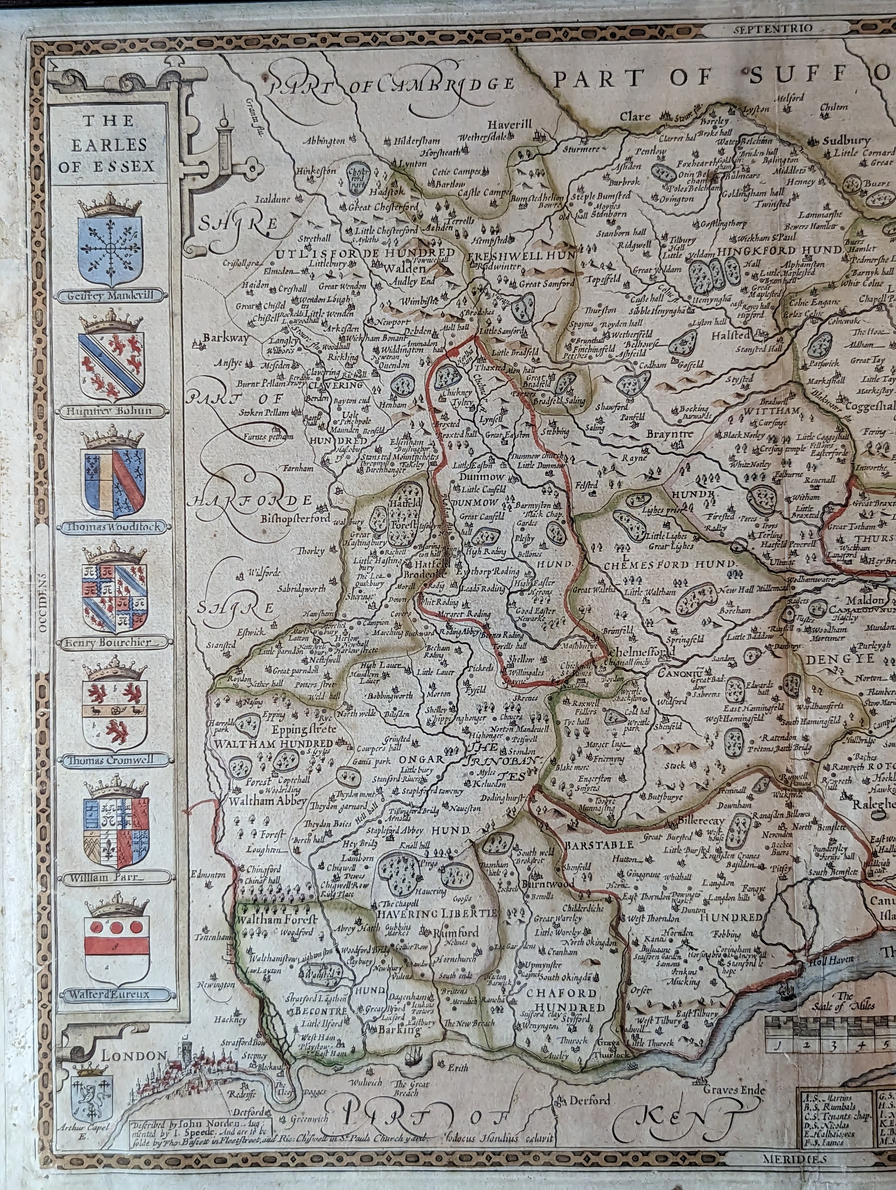 Described by Iohn Norden, Aug : / mented by I. Speede; And are to be / solde by Tho: Bassett in Fleetstreet, and Ric: Chiswell in St Pauls Church yard.