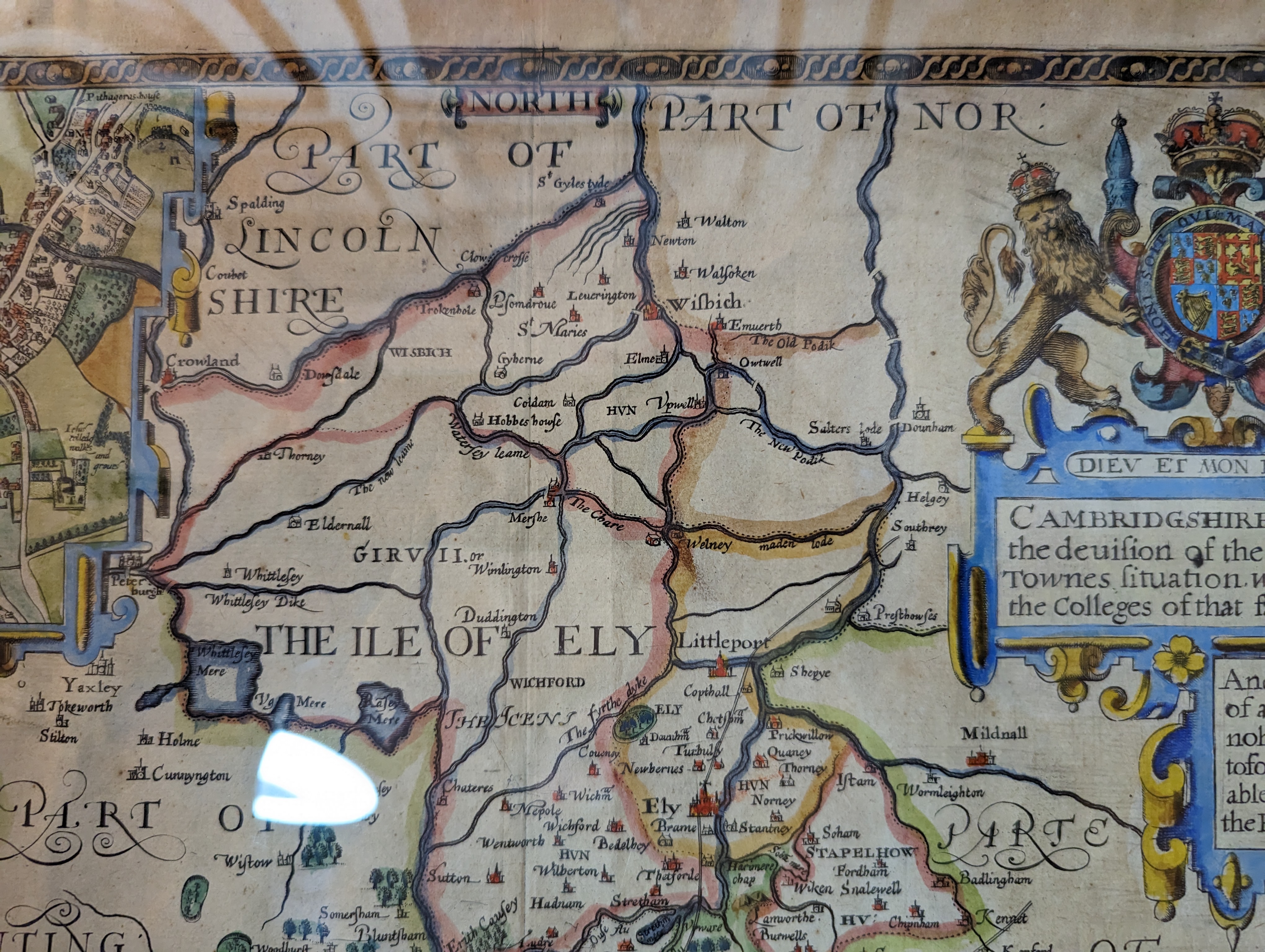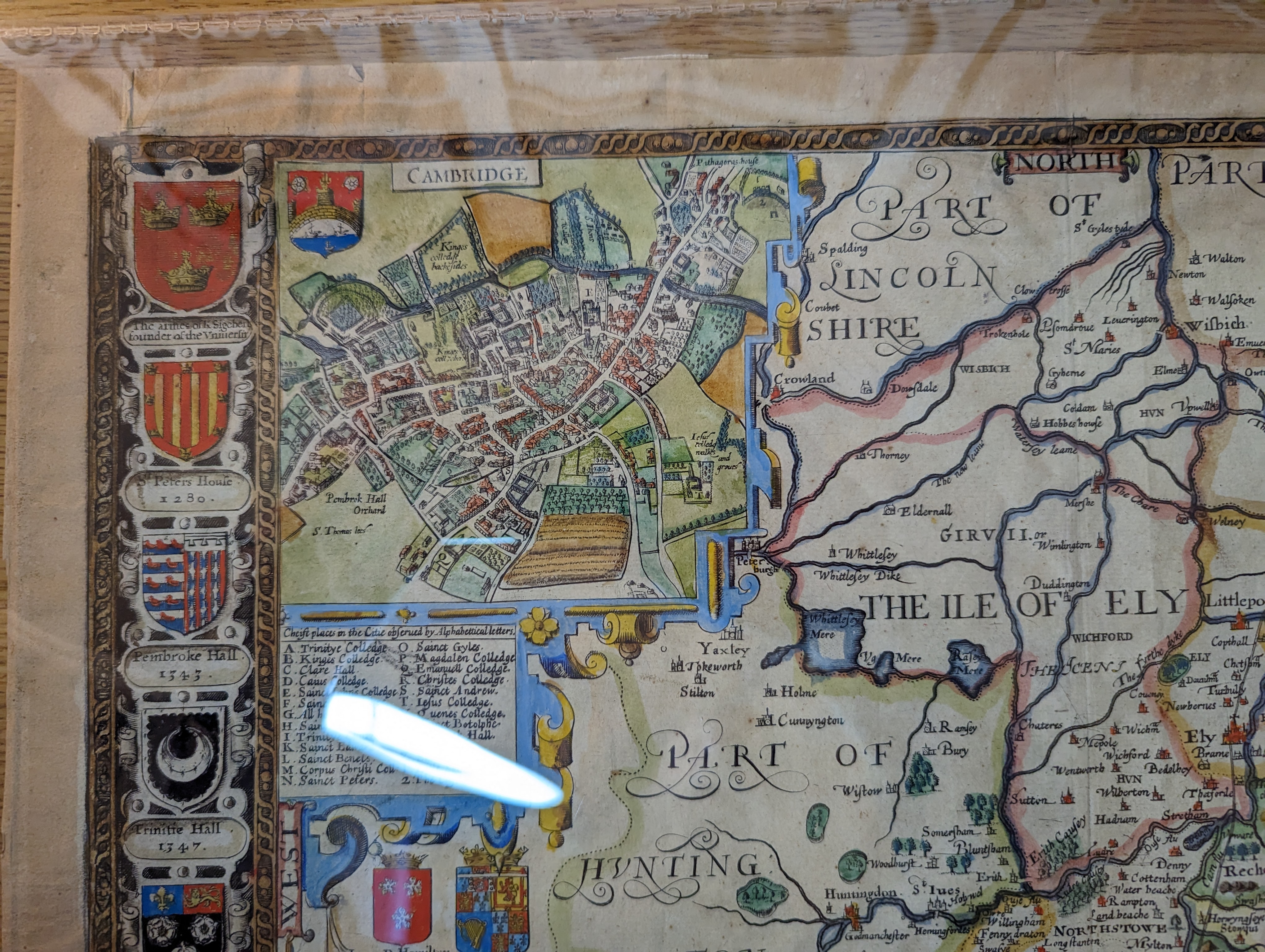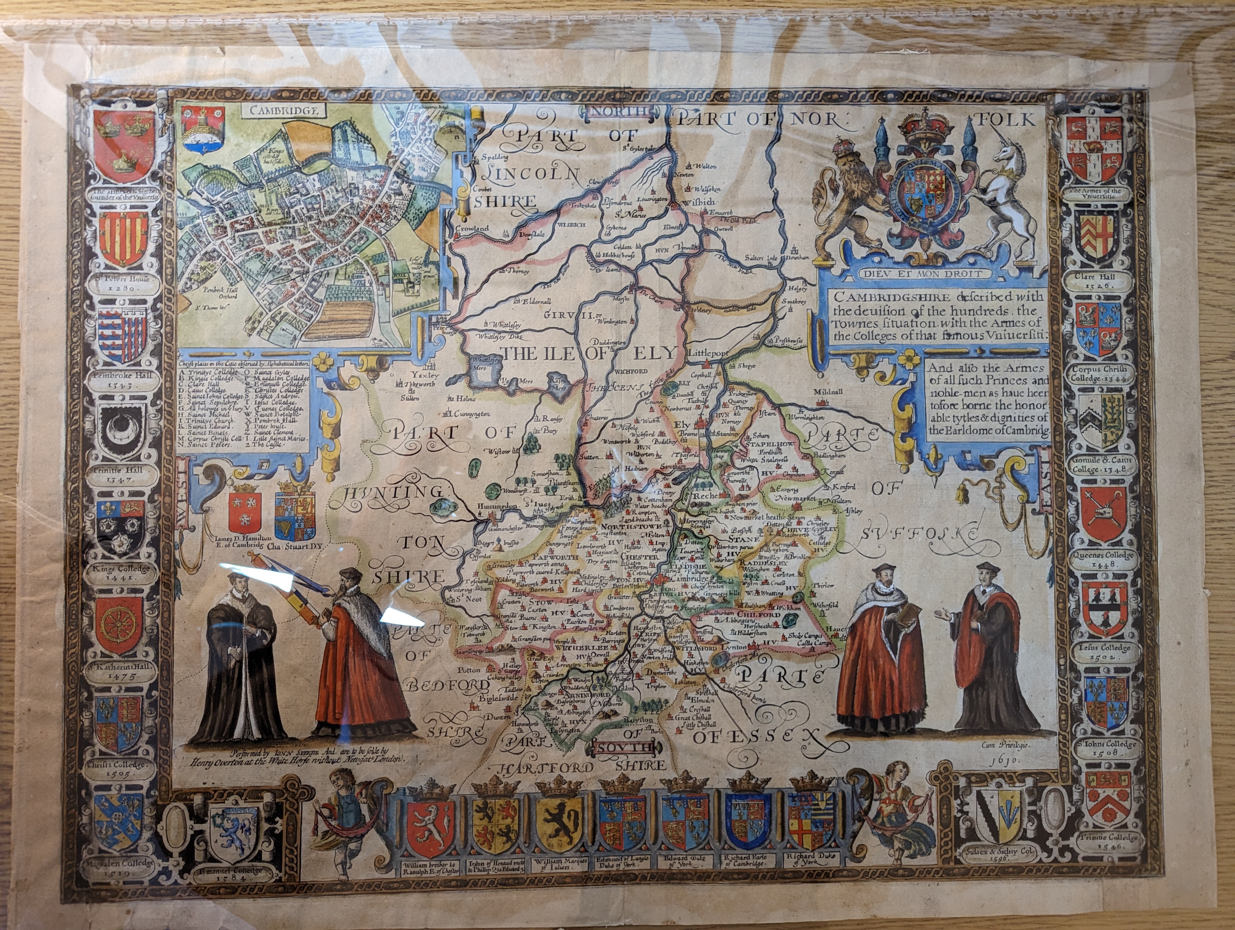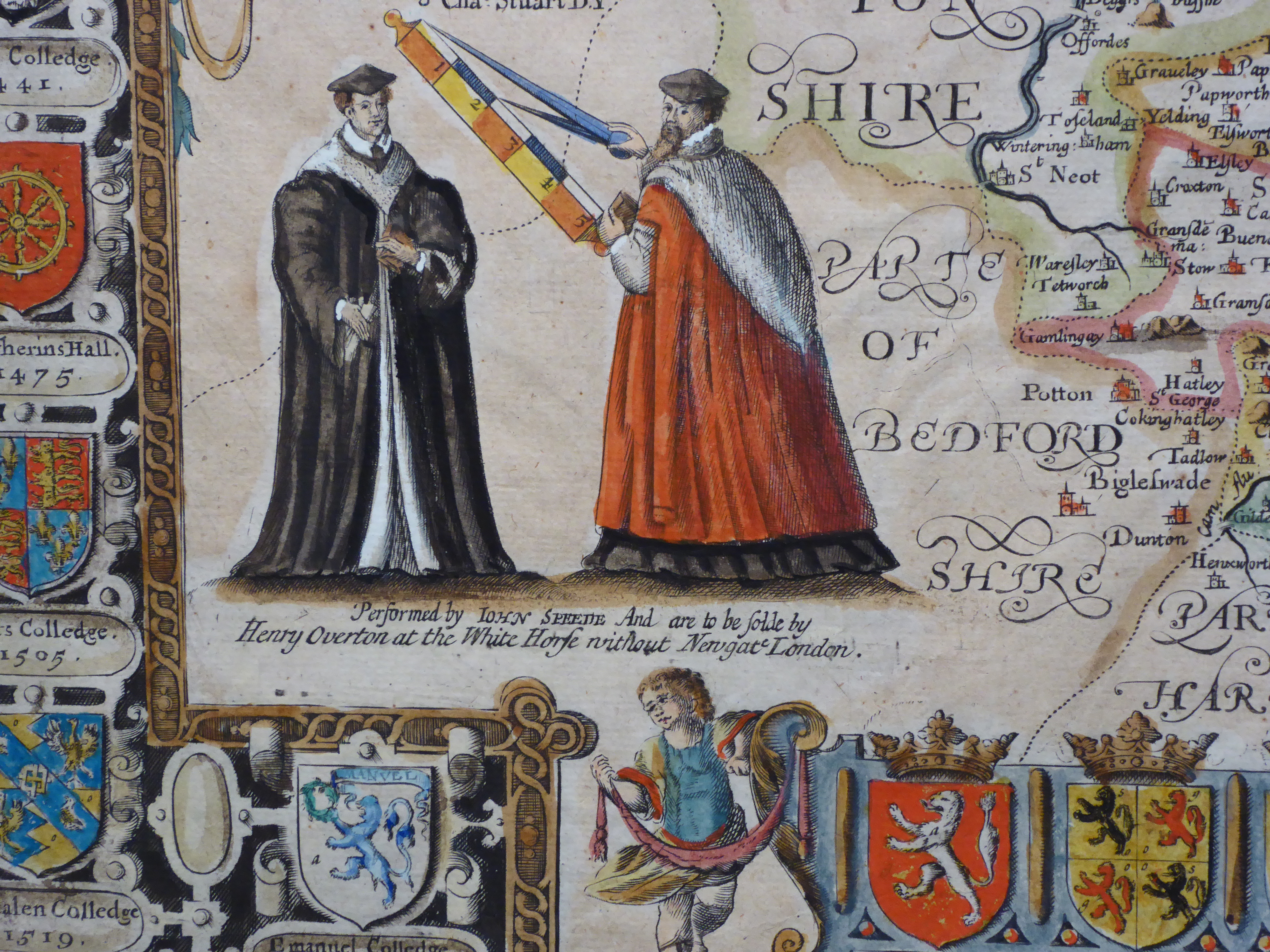 CAMBRIDGSHYRE described with / the deuision of the hundreds, the / Townes situation, with the Armes of / the Colleges of that famous Vniuersiti.