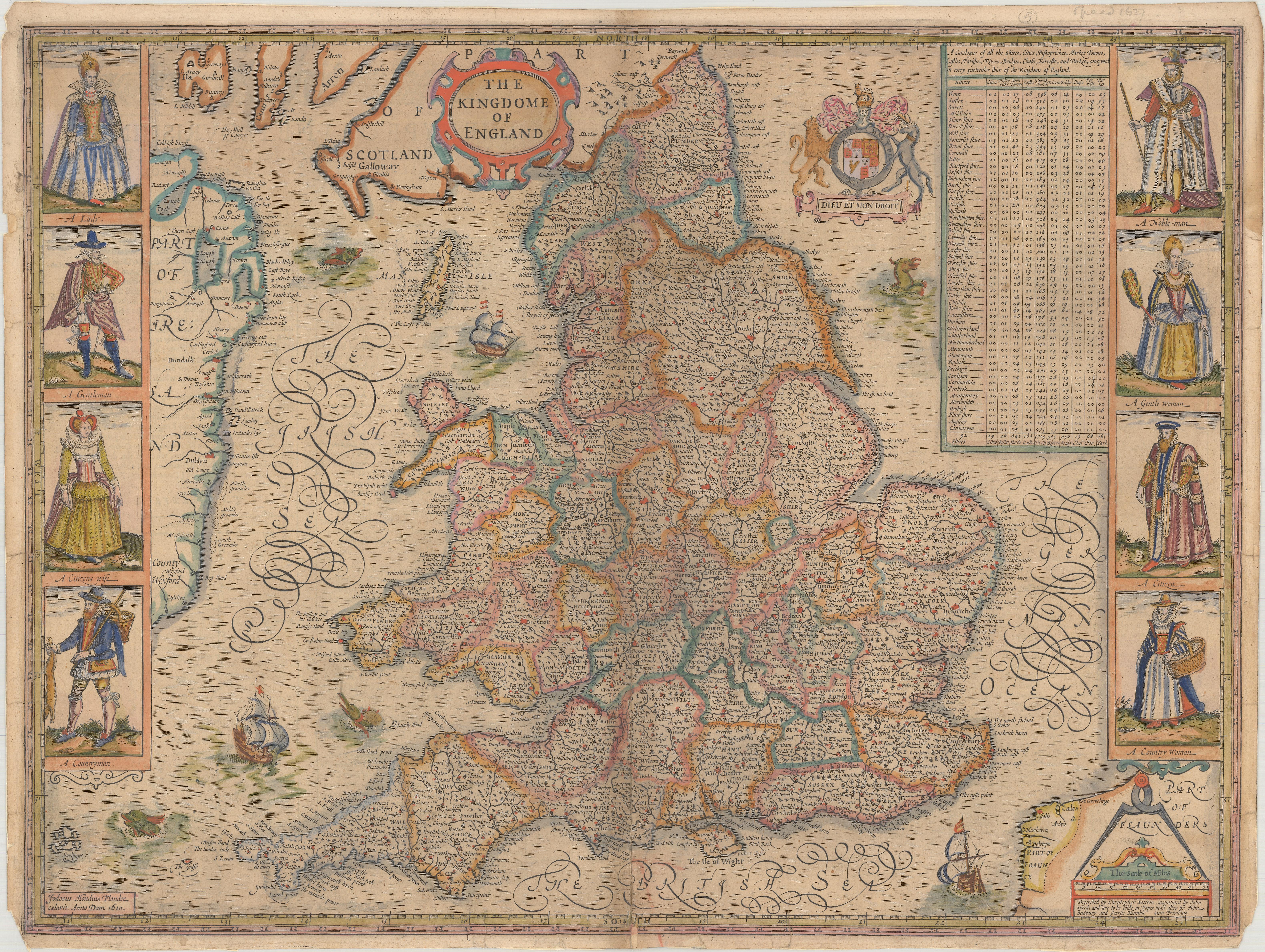 "Described by Christopher Saxton, augmented by John Speed, and are to be solde in Popes head alley by John Sudbury and George Humble. Cum Privilegio