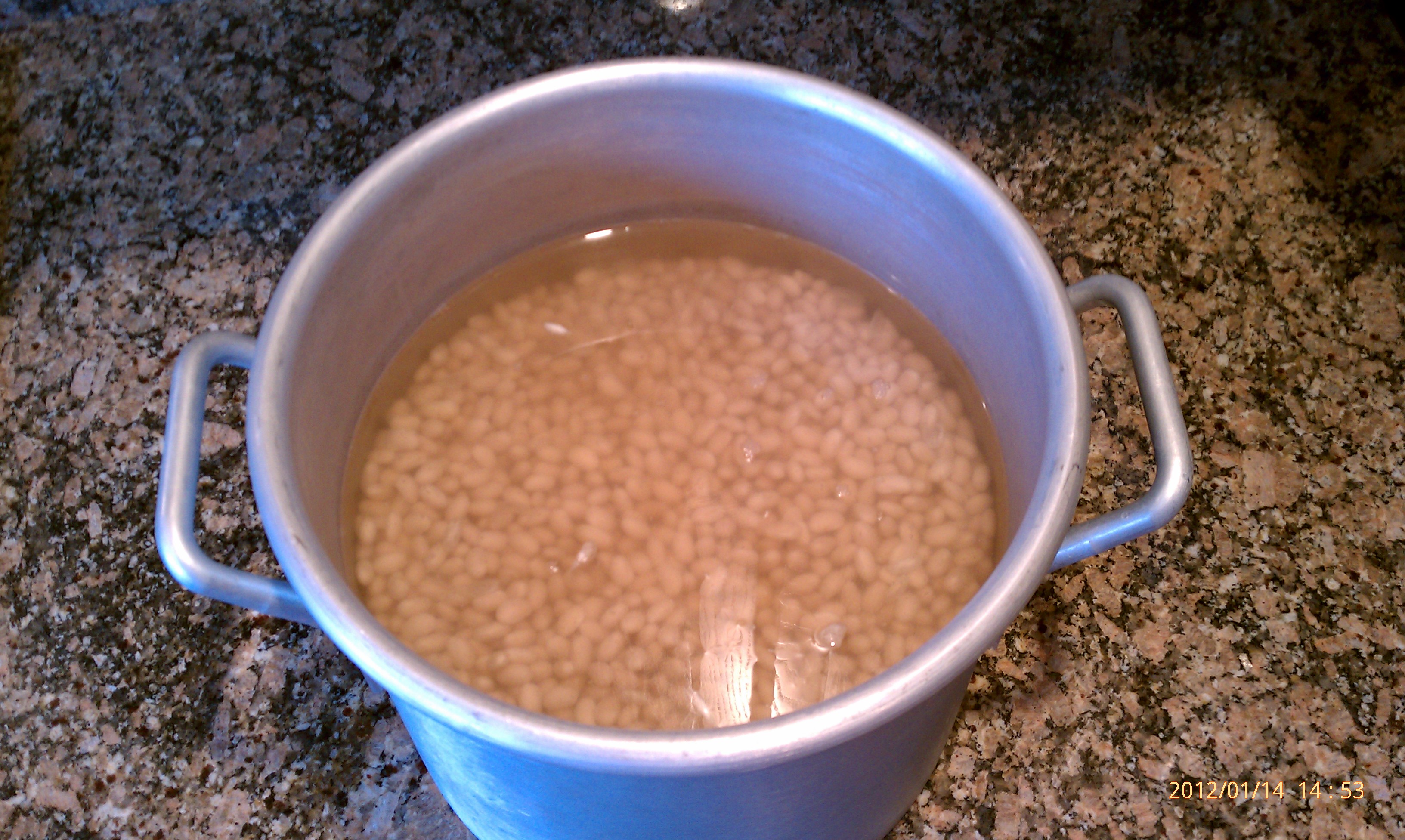 Measure two large, 9 Quart+, covered stock pots to verify that they are not too tall for the oven. (Note: Only one pot will be in the oven at a time.) With some juggling, you could make this recipe with only one large stock pot. Night before: Place beans and water in a large covered pot in the refrigerator. (NO salt.)